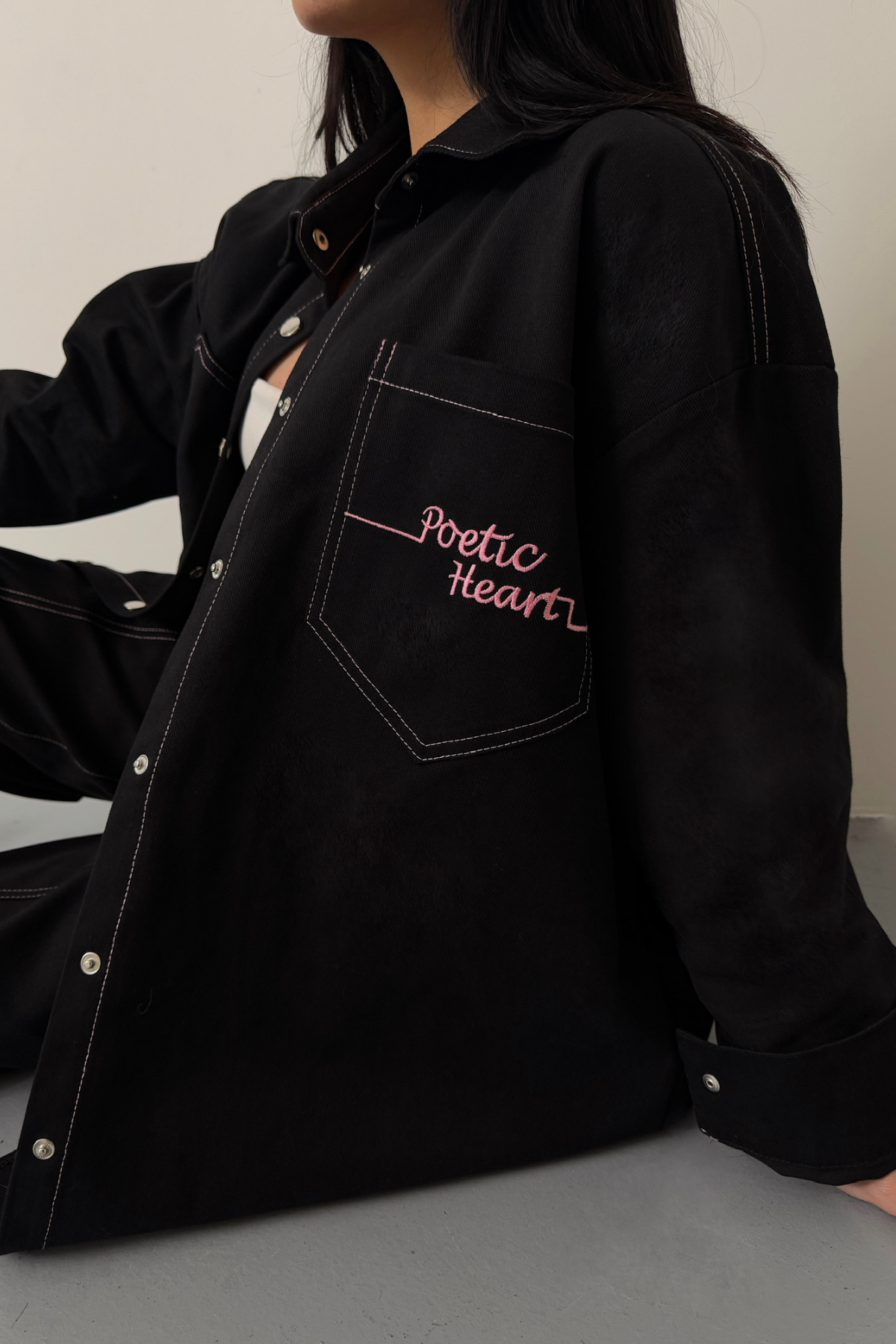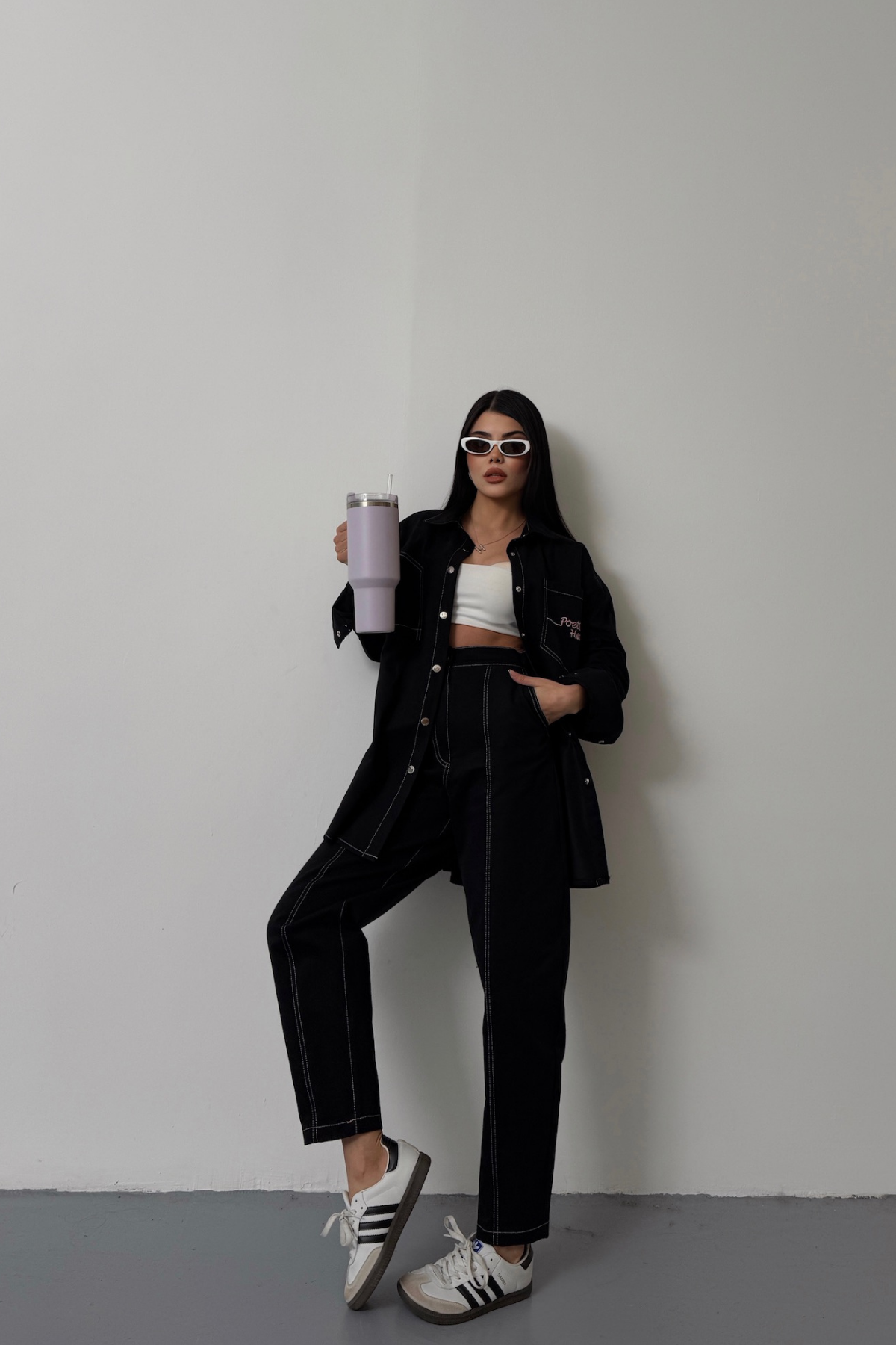 DENİM PUNTOLU GÖMLEK-PANTOLON TAKIM - Pembe
