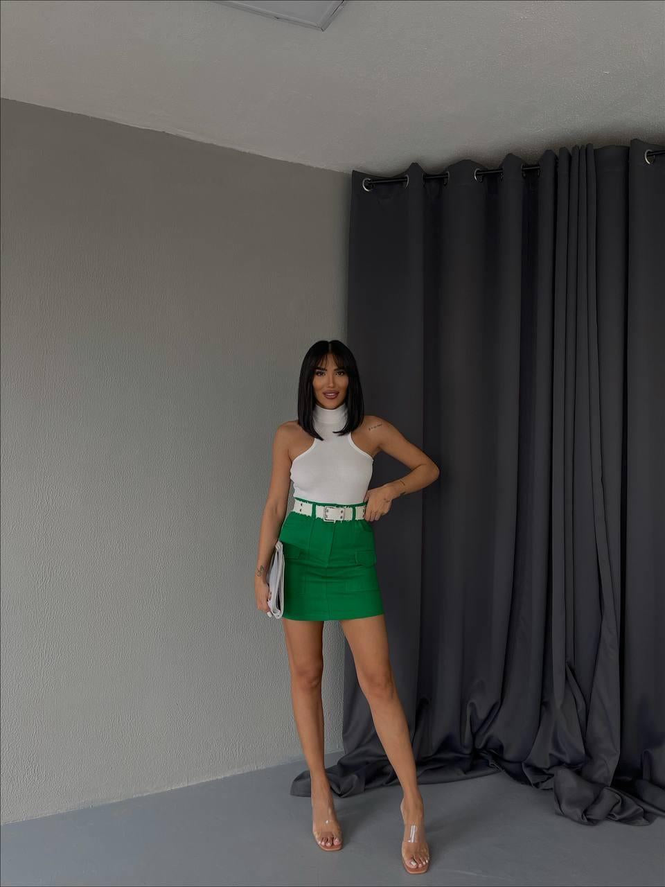 GABARDİN KISA ETEK CEP DETAYLI - Yeşil