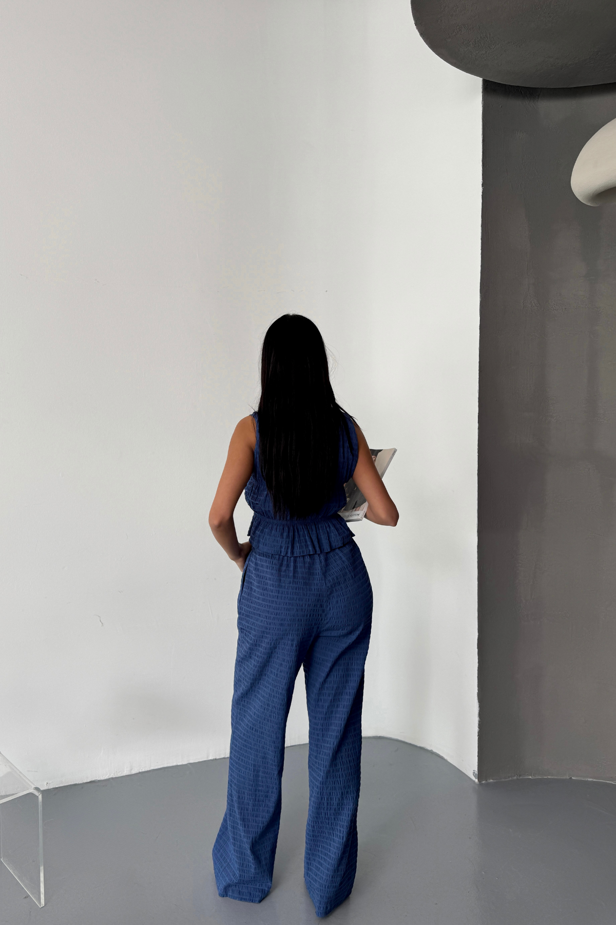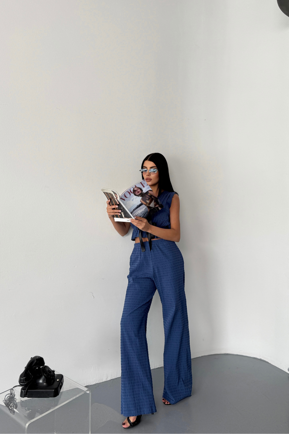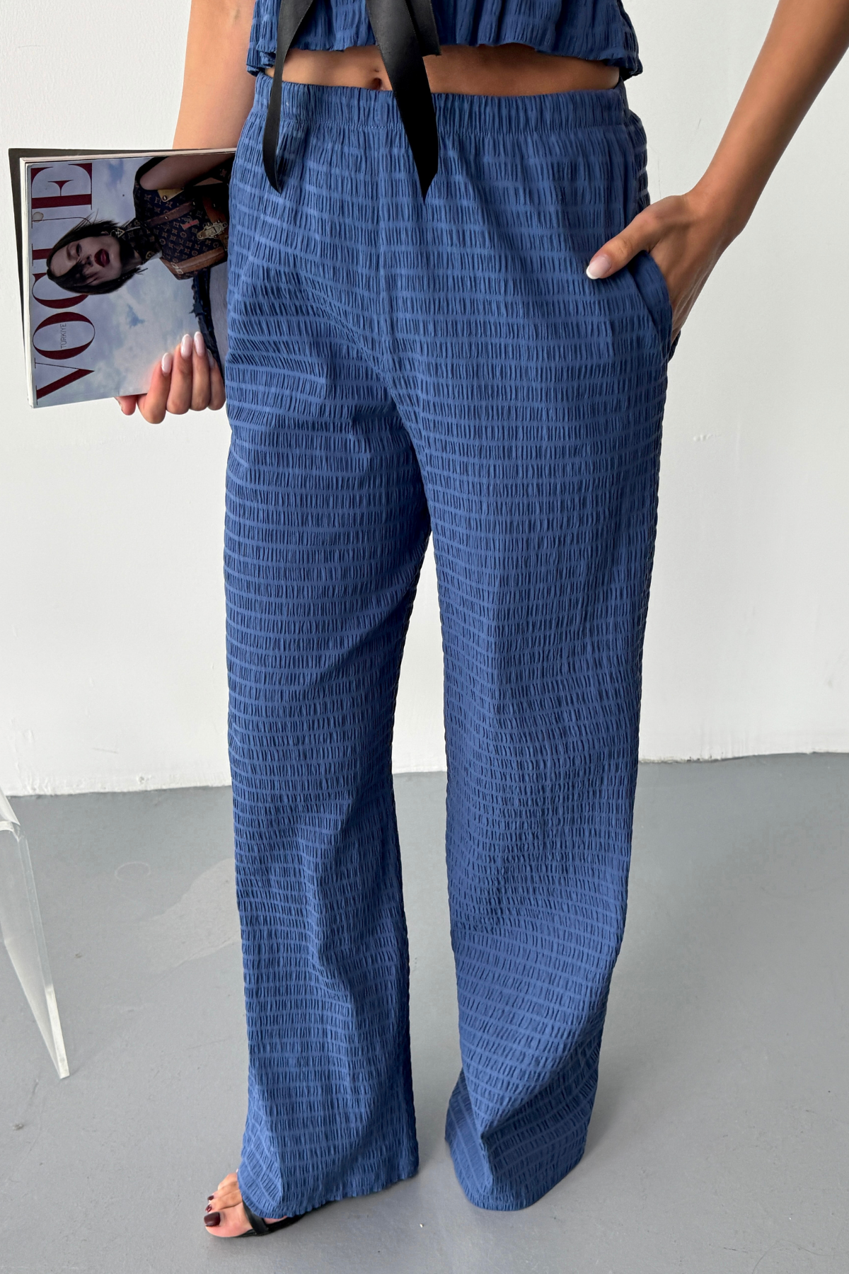 GOFRE BLUZ-PANTOLON TK KURDELE DETAYLI - Mavi