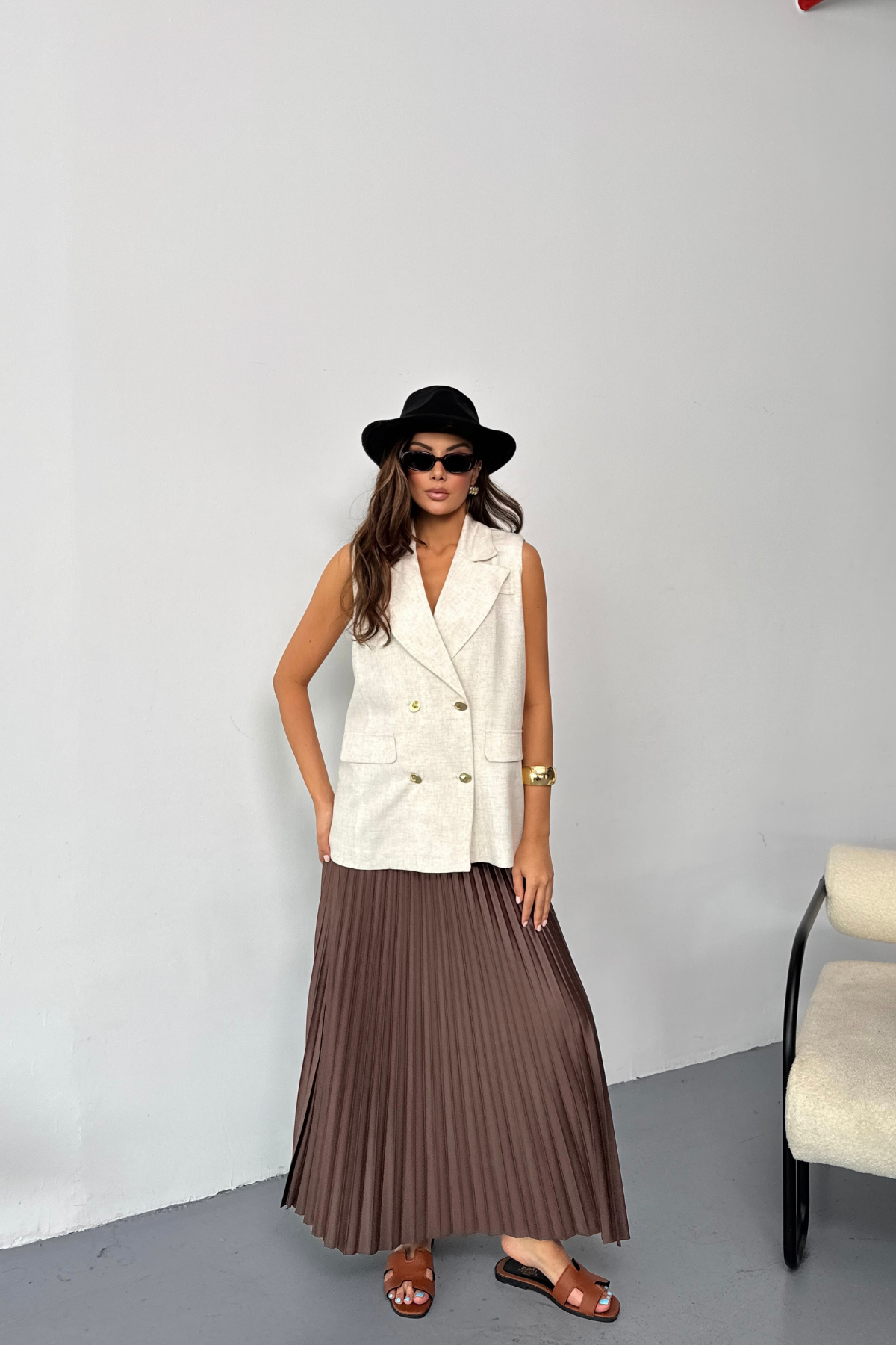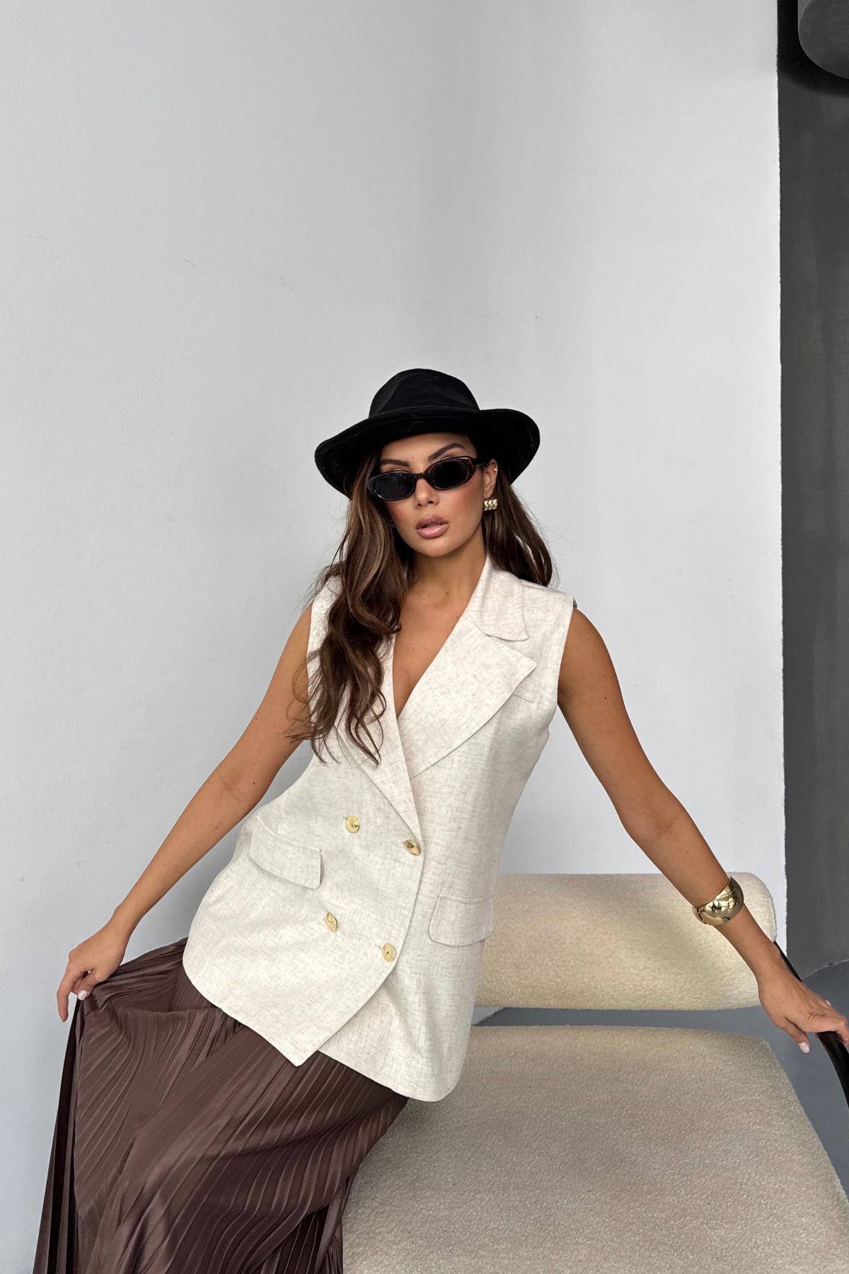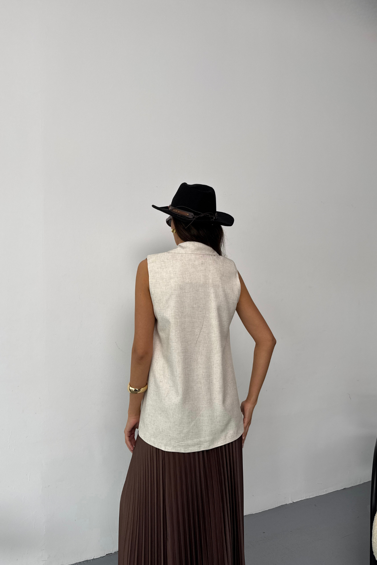 GOLD DÜĞMELİ KETEN YELEK - Ham