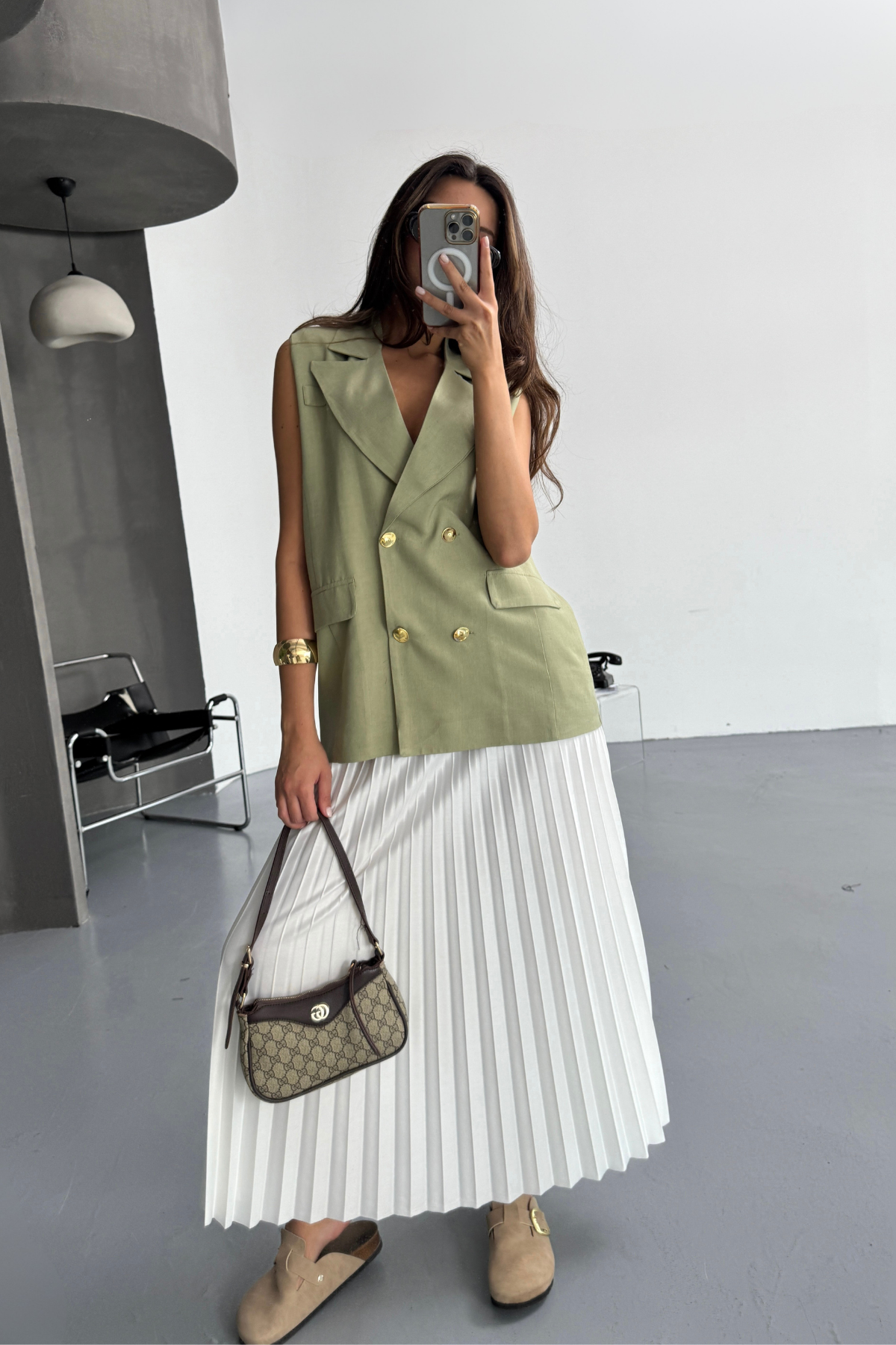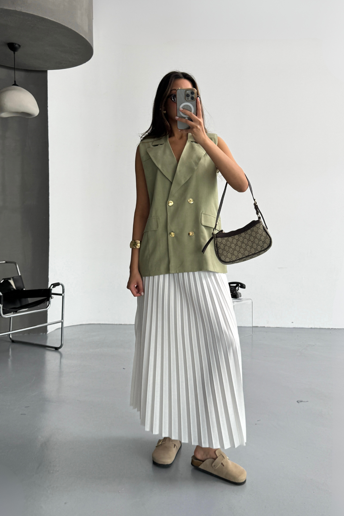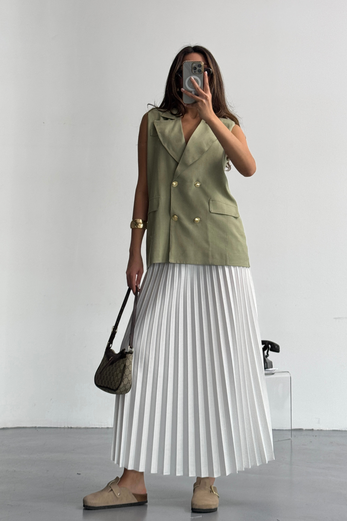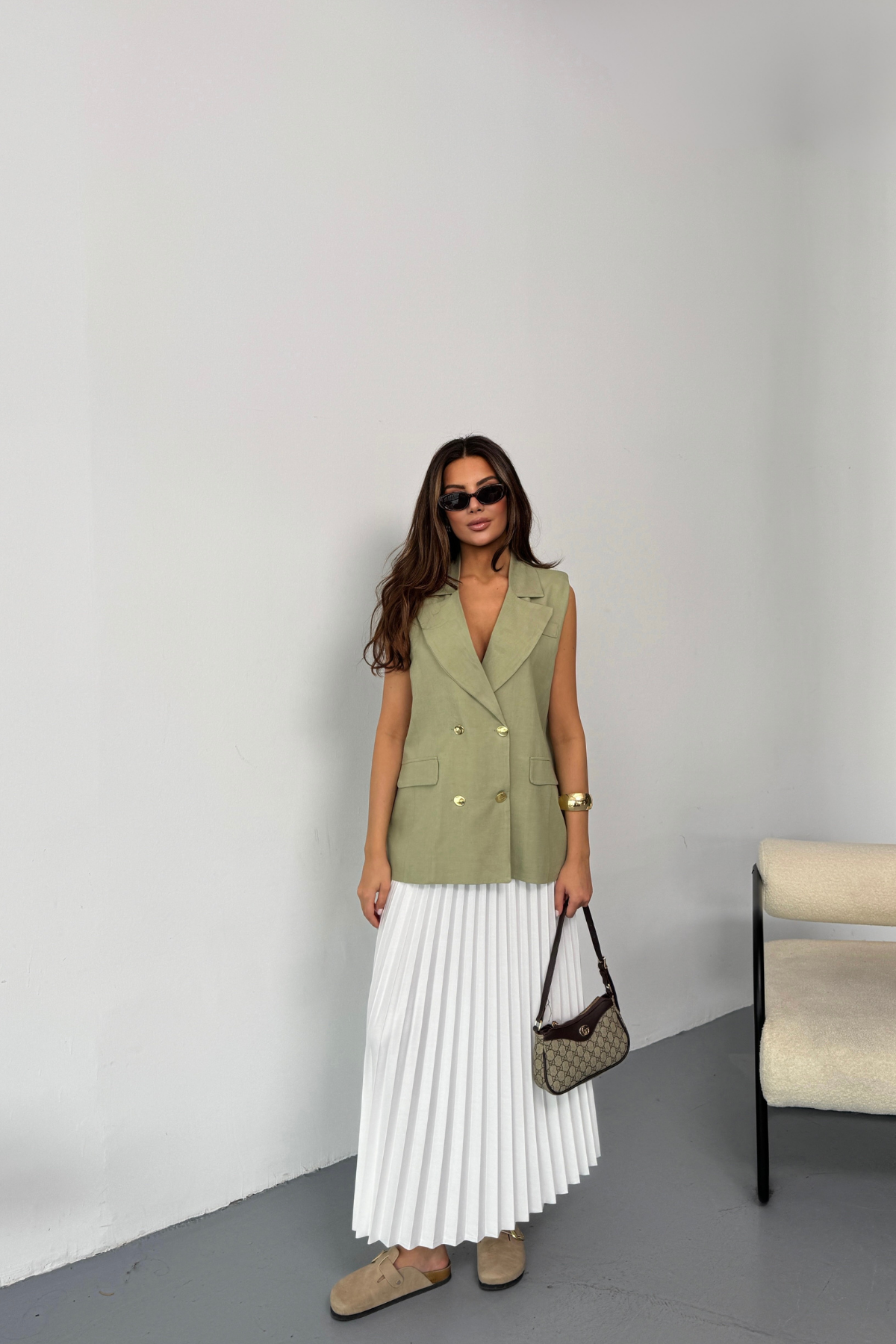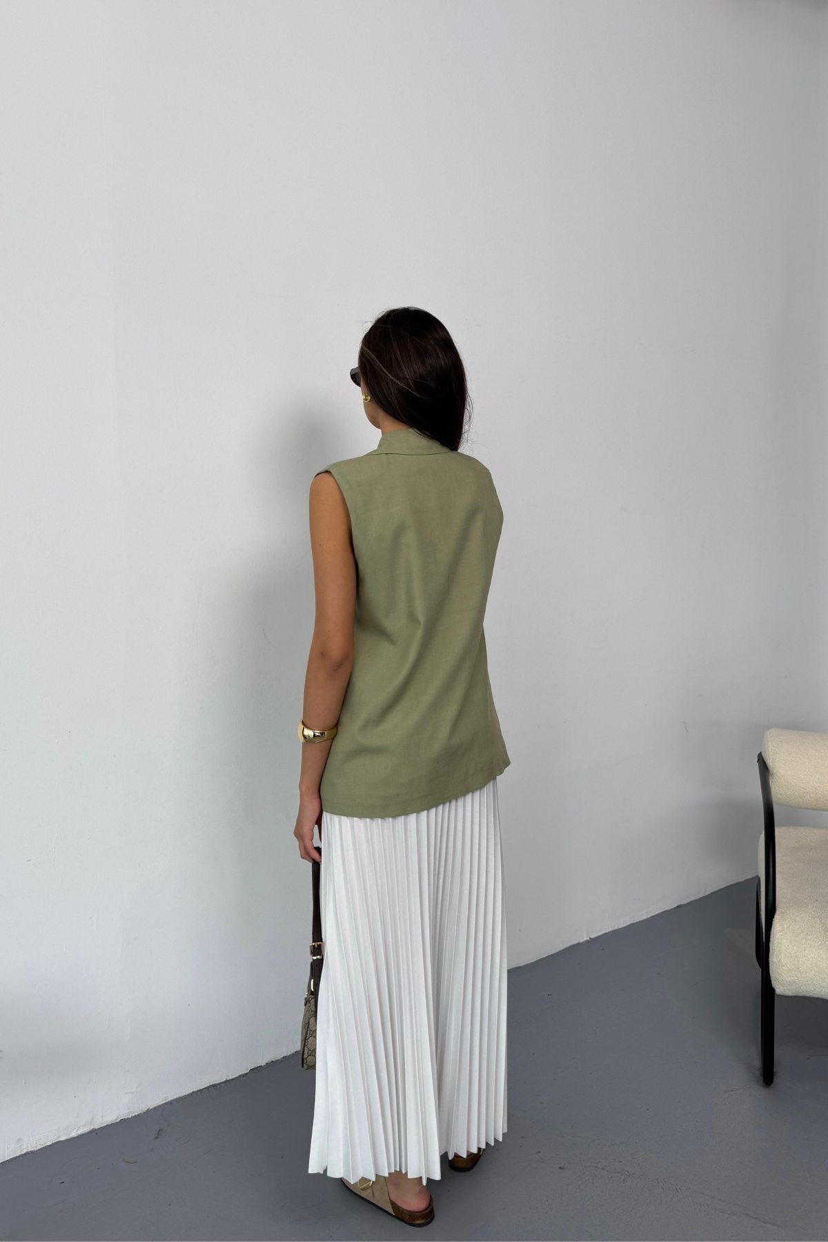 GOLD DÜĞMELİ KETEN YELEK - Yeşil