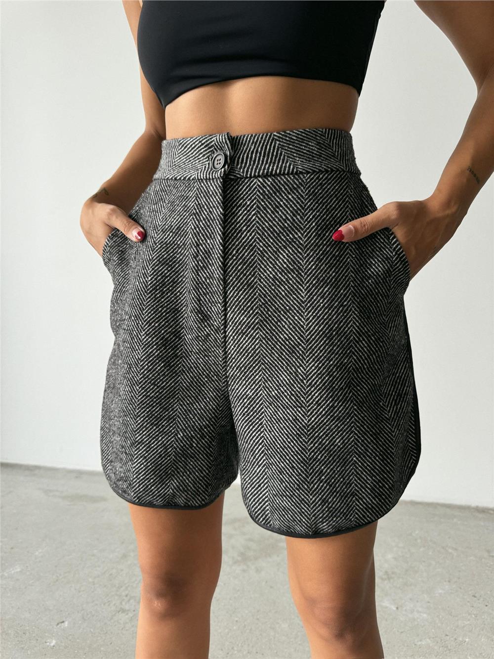 KAŞE KISA ŞORT - Siyah