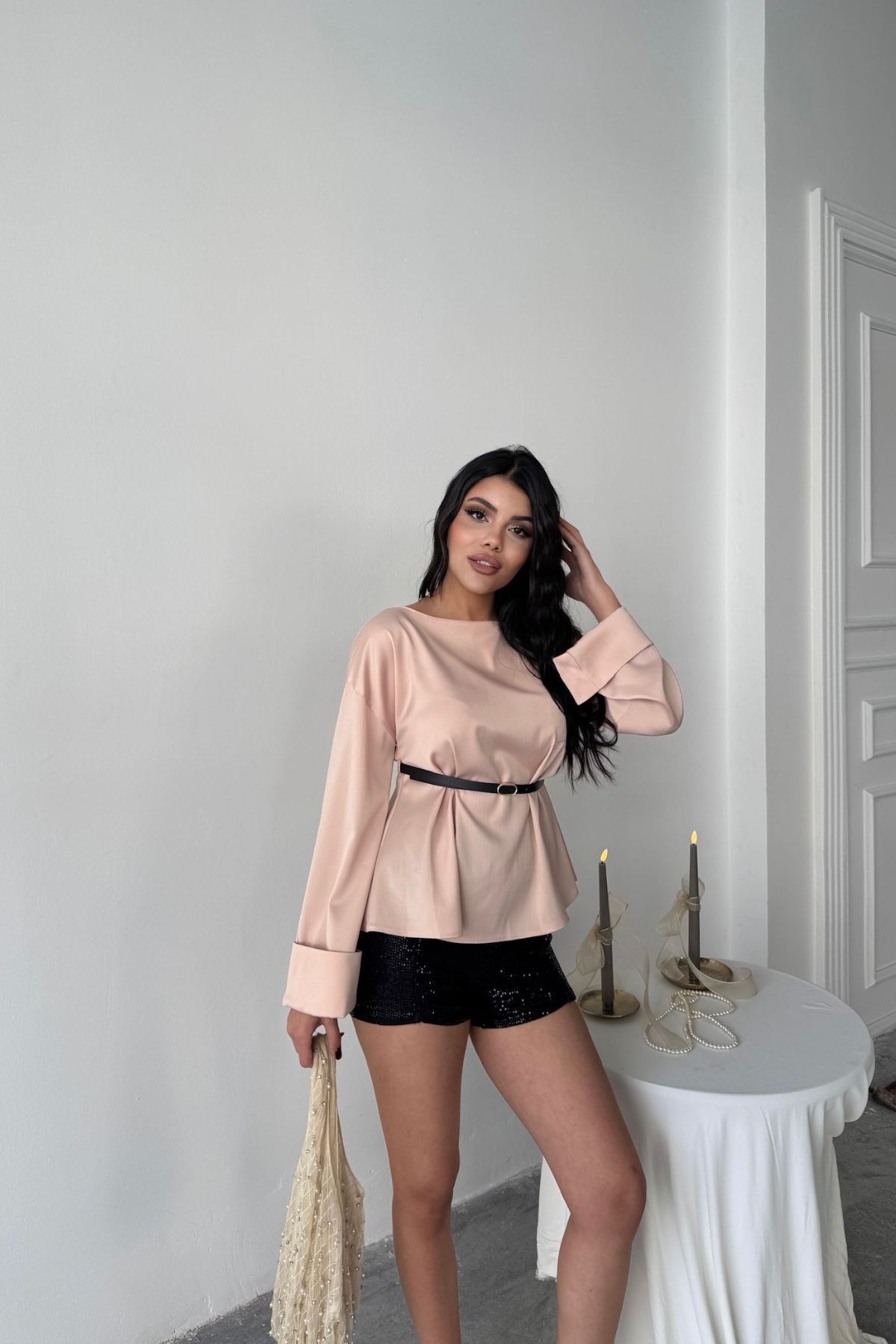 KEMER DETAYLI SATEN BLUZ - Pembe