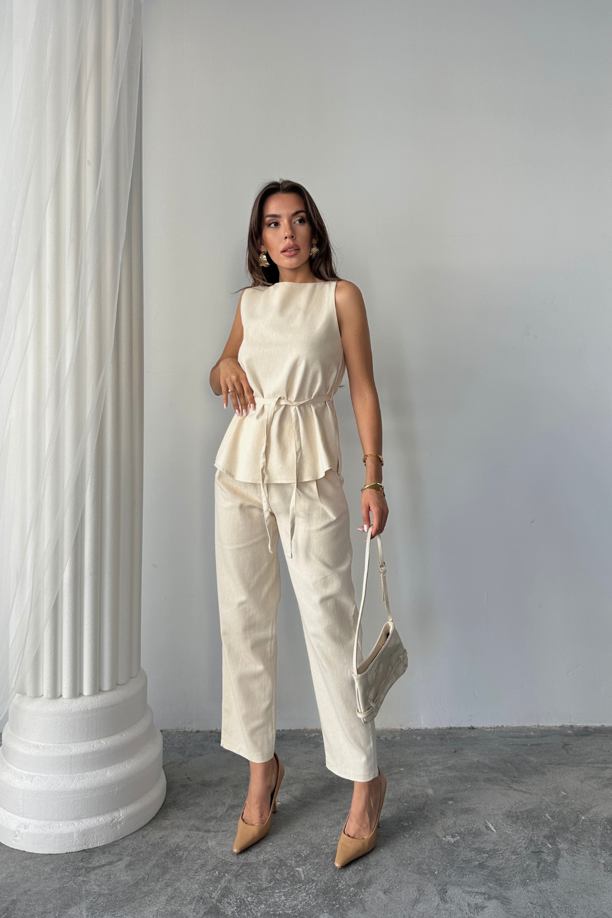 KETEN BLUZ - PANTOLON TAKIM MASSİMO MODEL SCREAT KUMAŞ - Bej