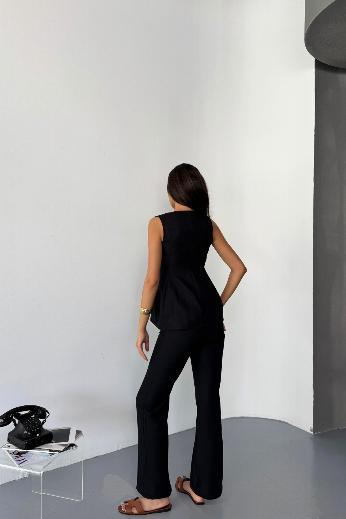 KETEN GOLD DÜĞMELİ YELEK - PANTOLON TK - Siyah