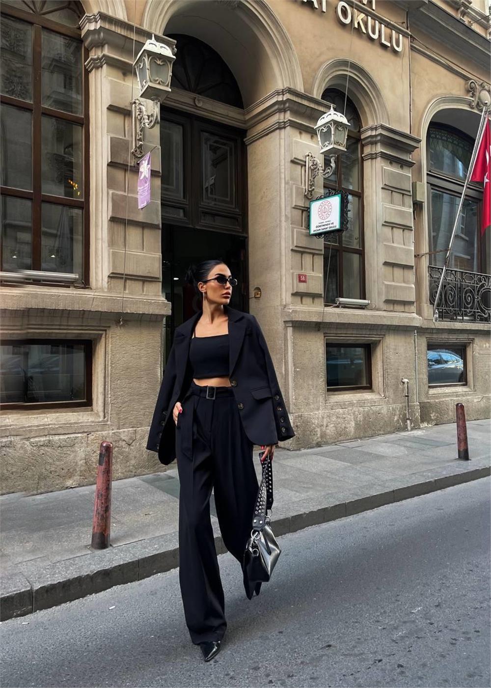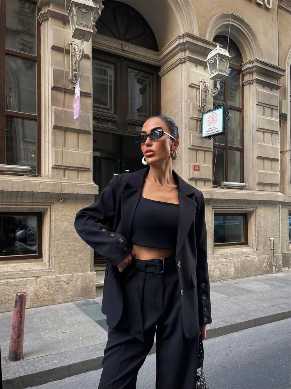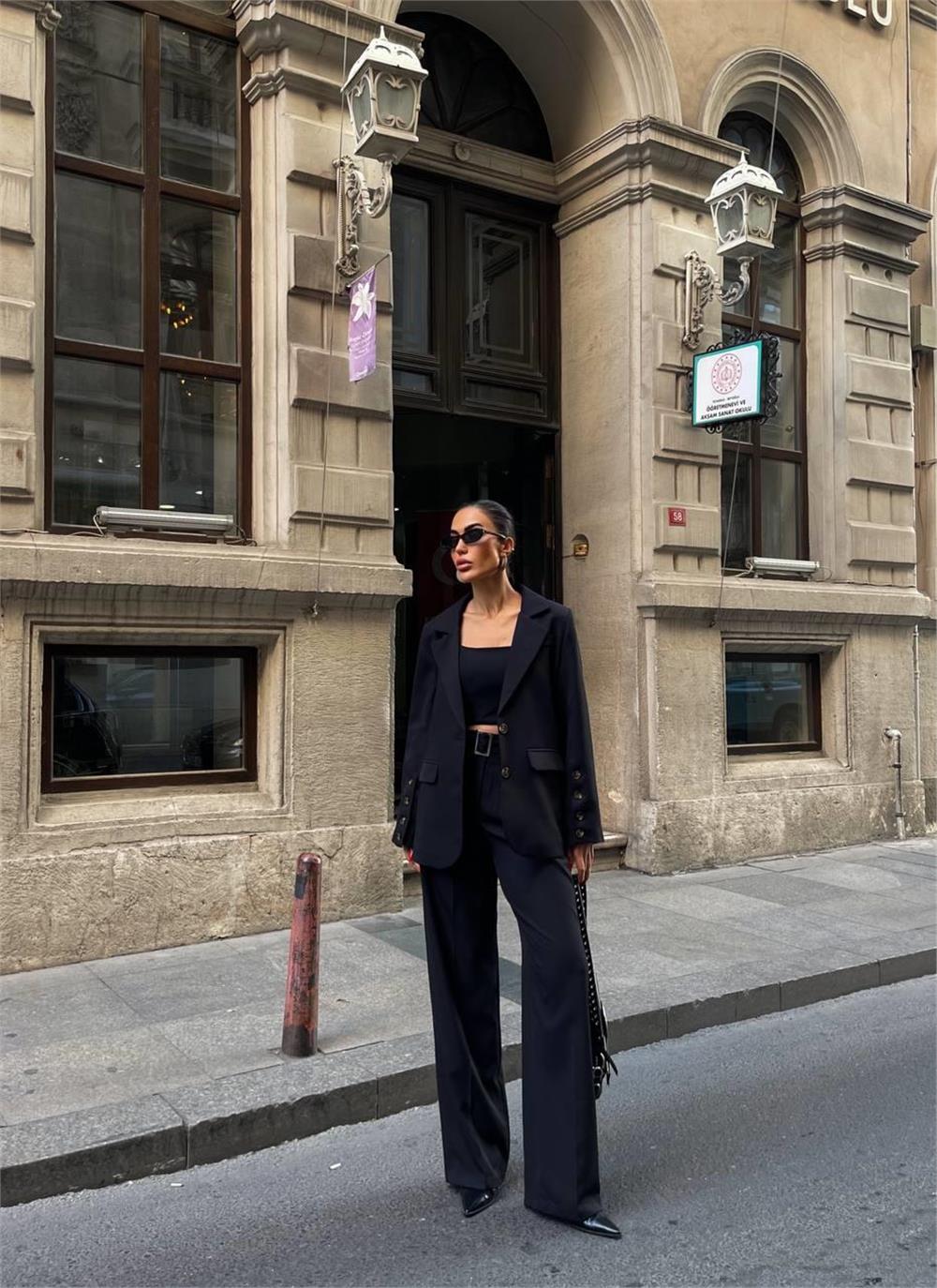 KOL 4 DÜĞME - BÜSTİYERLİ 3 CEKET PANTOLON TAKIM - Siyah