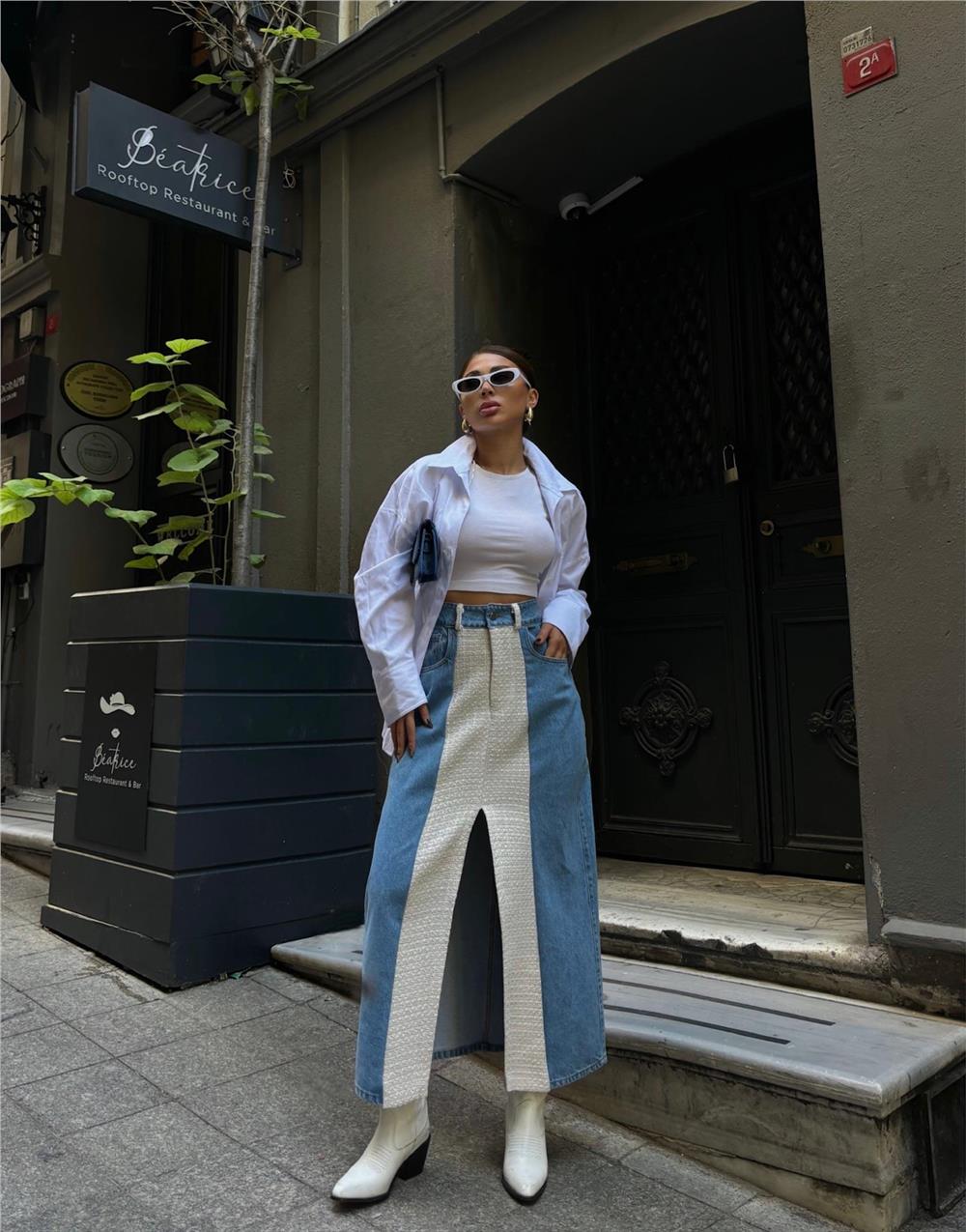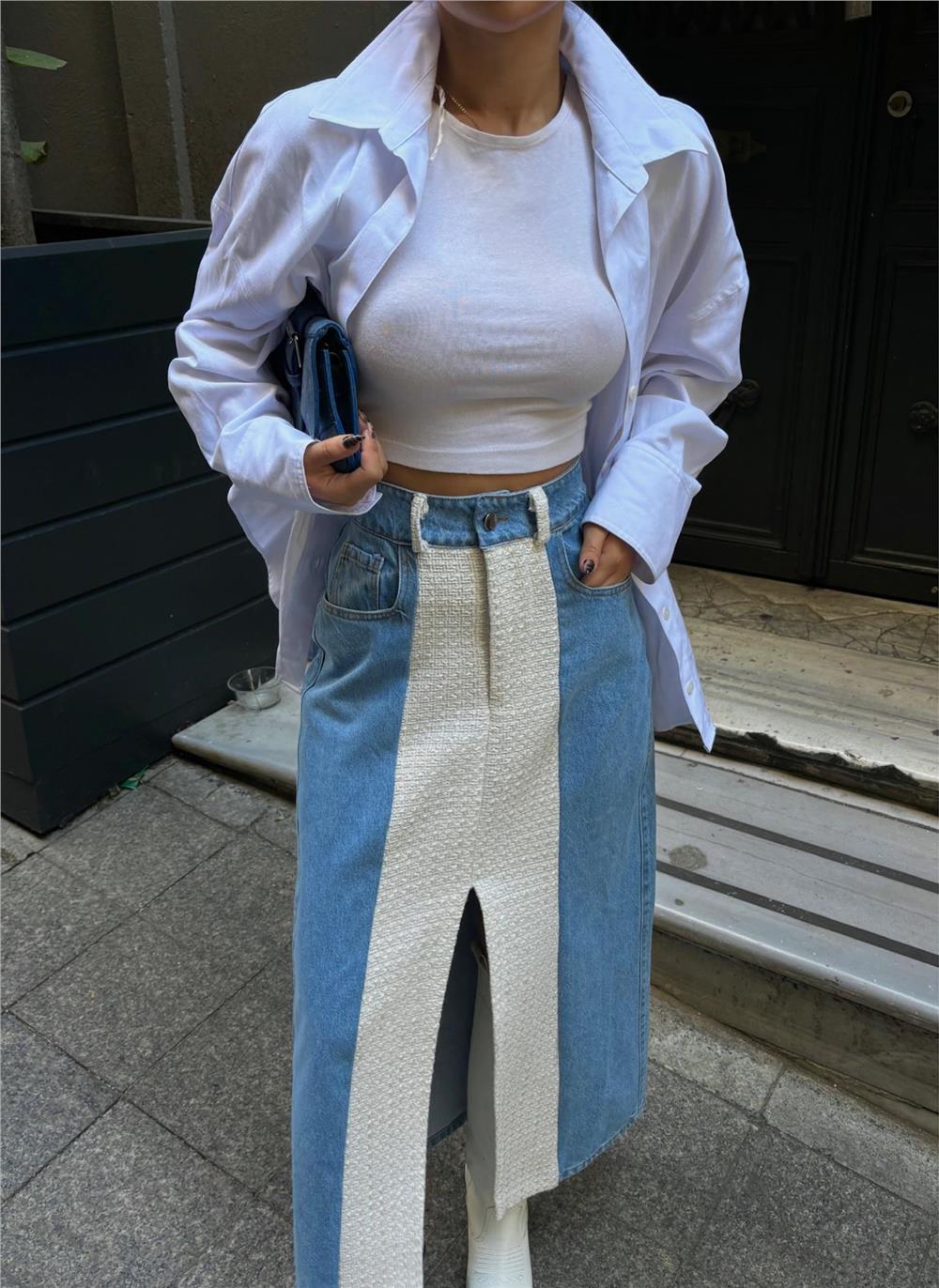 KOT ETEK PARÇALI UZUN ÖNDEN YIRTMAÇLI - Beyaz