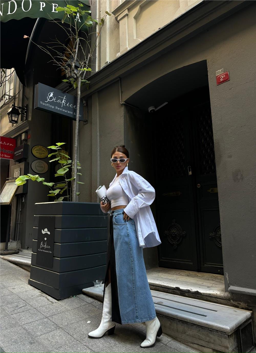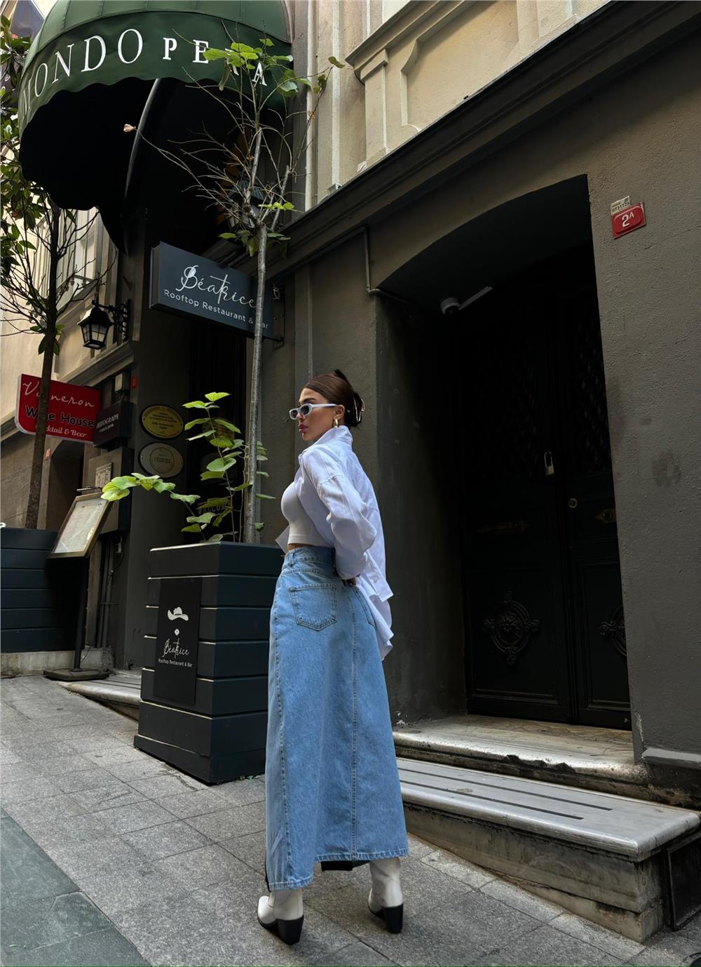 KOT ETEK PARÇALI UZUN ÖNDEN YIRTMAÇLI - Siyah