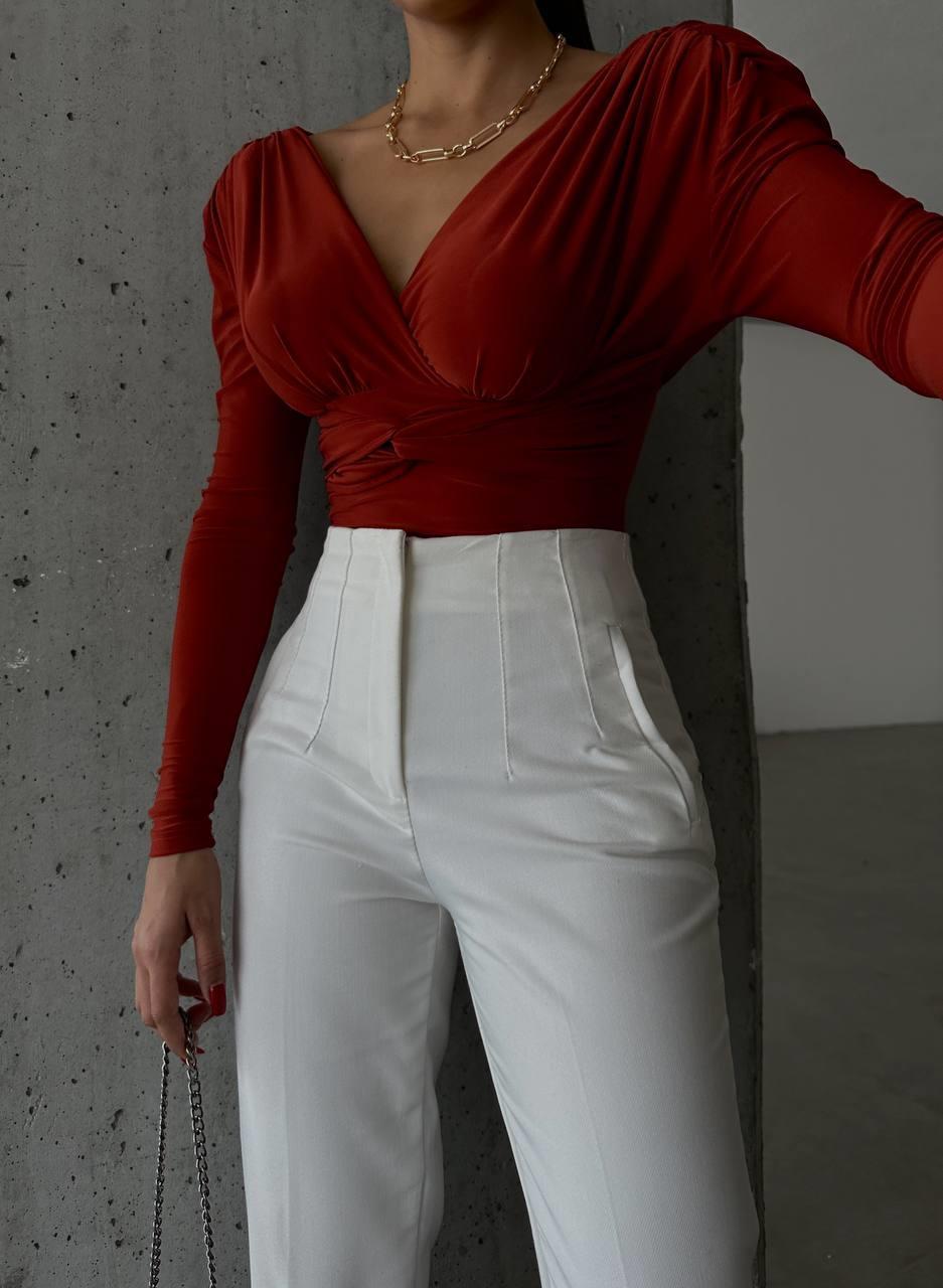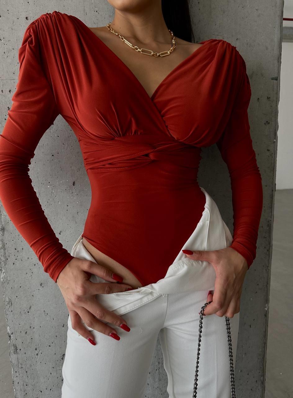 SANDY VATKALI BODYSUİT DRAPELİ - Kiremit