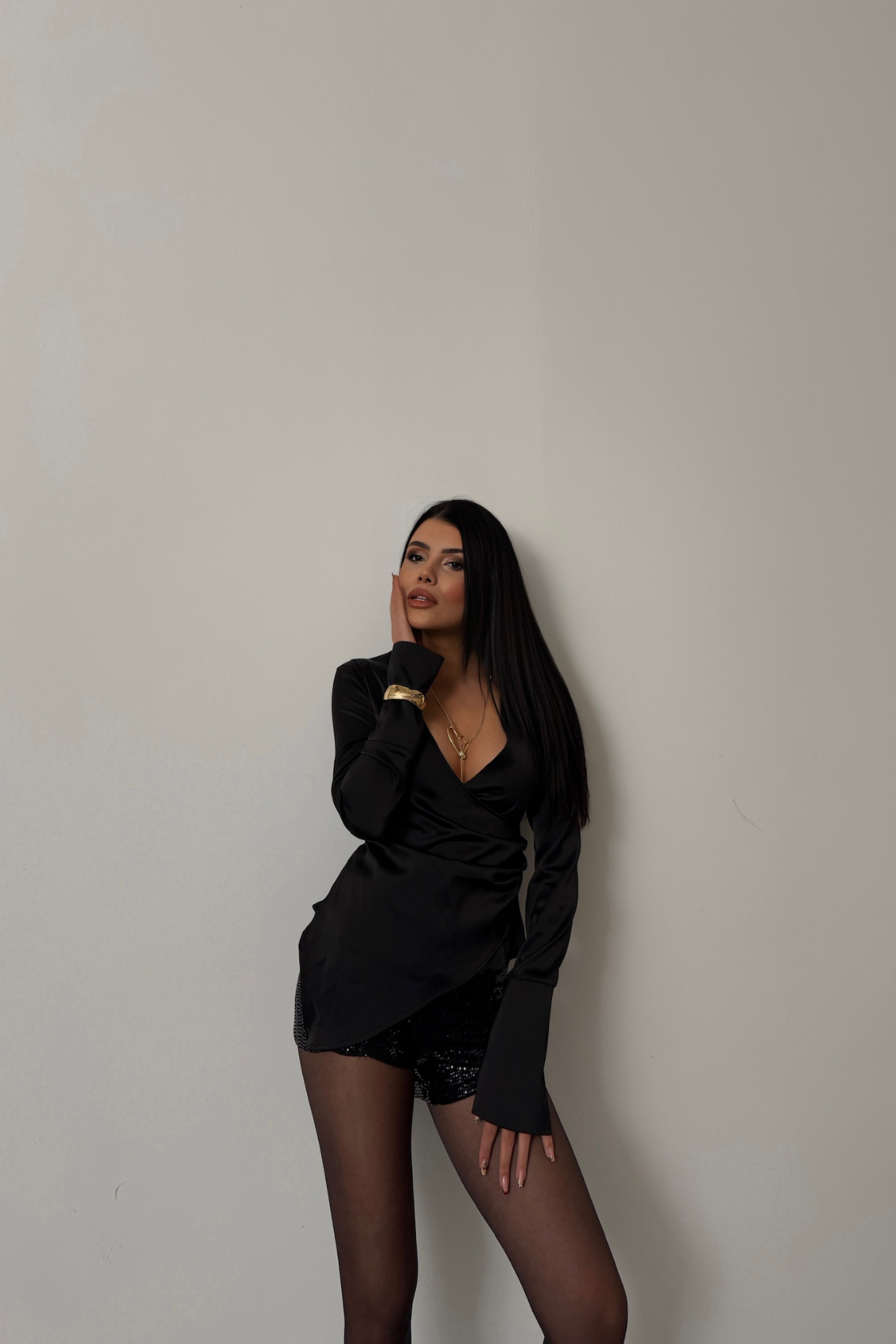 SATEN ANVELOP BLUZ MANŞET KOL - Siyah