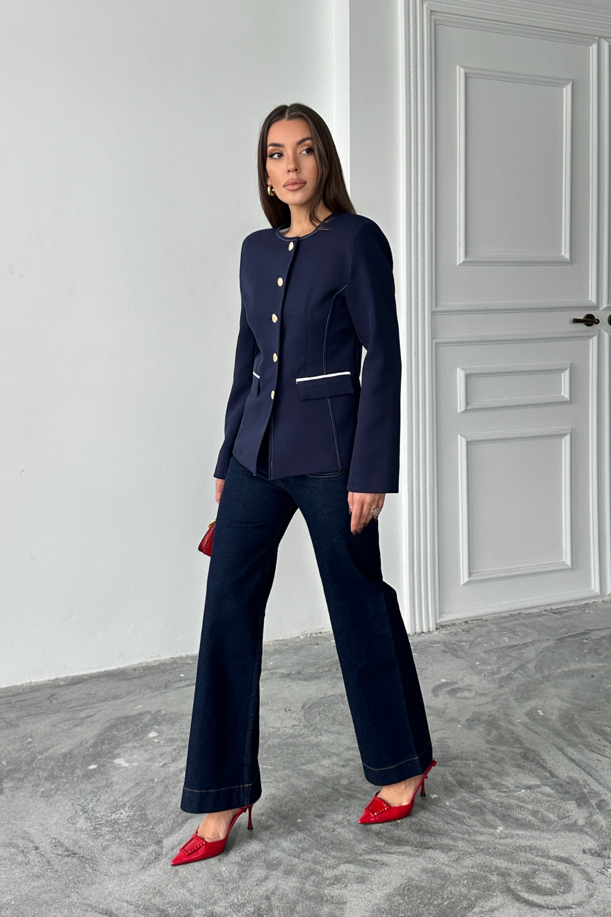 SIFIR YAKA BALZER CEKET CEP BİYE DETAYLI - Lacivert