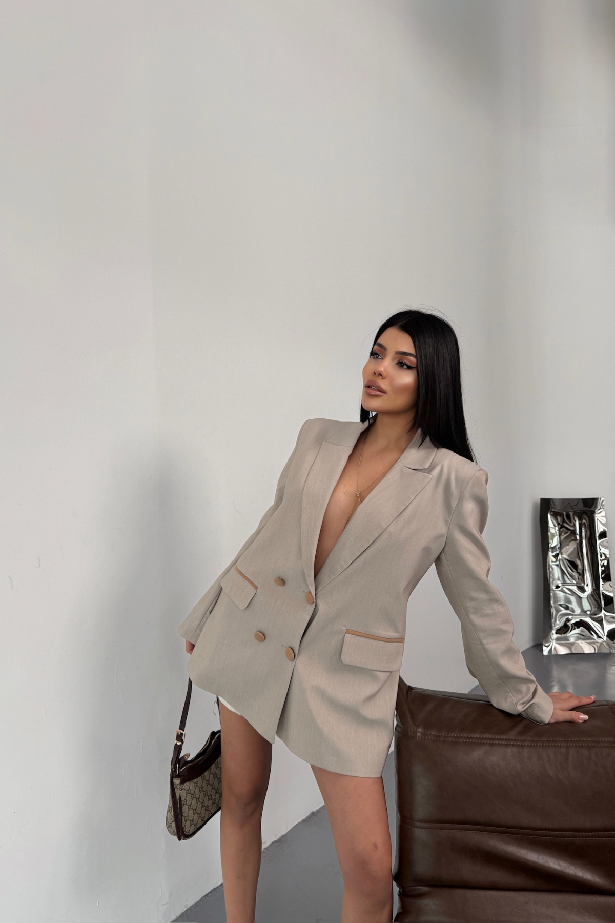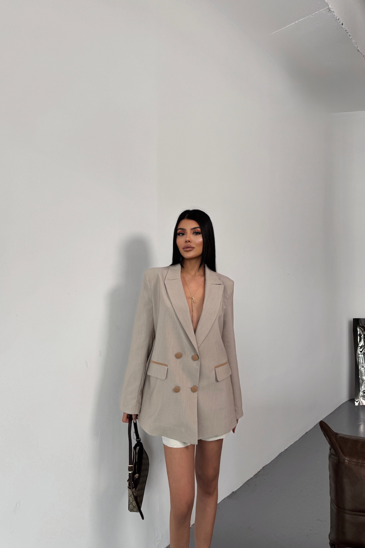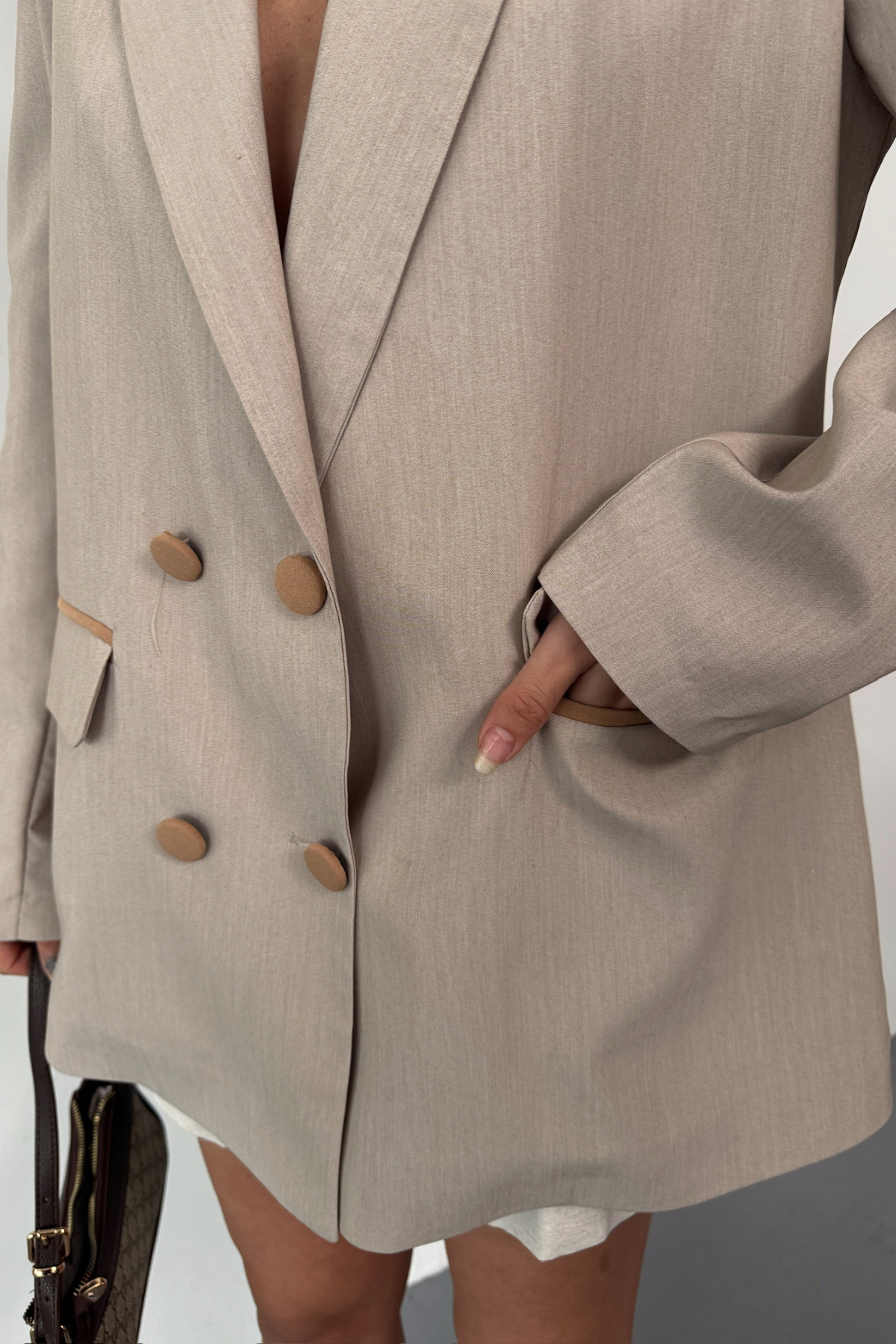 TASARIM CEKET KAPLAMA DÜĞMELİ - Bej
