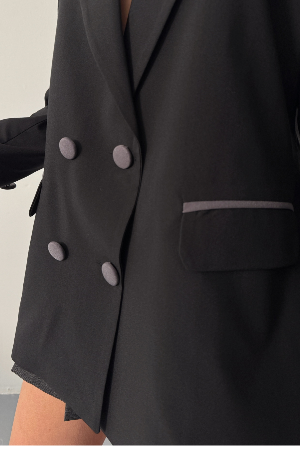 TASARIM CEKET KAPLAMA DÜĞMELİ - Siyah