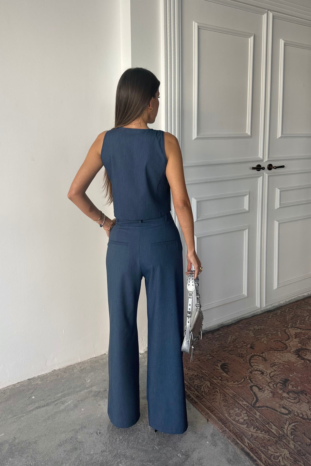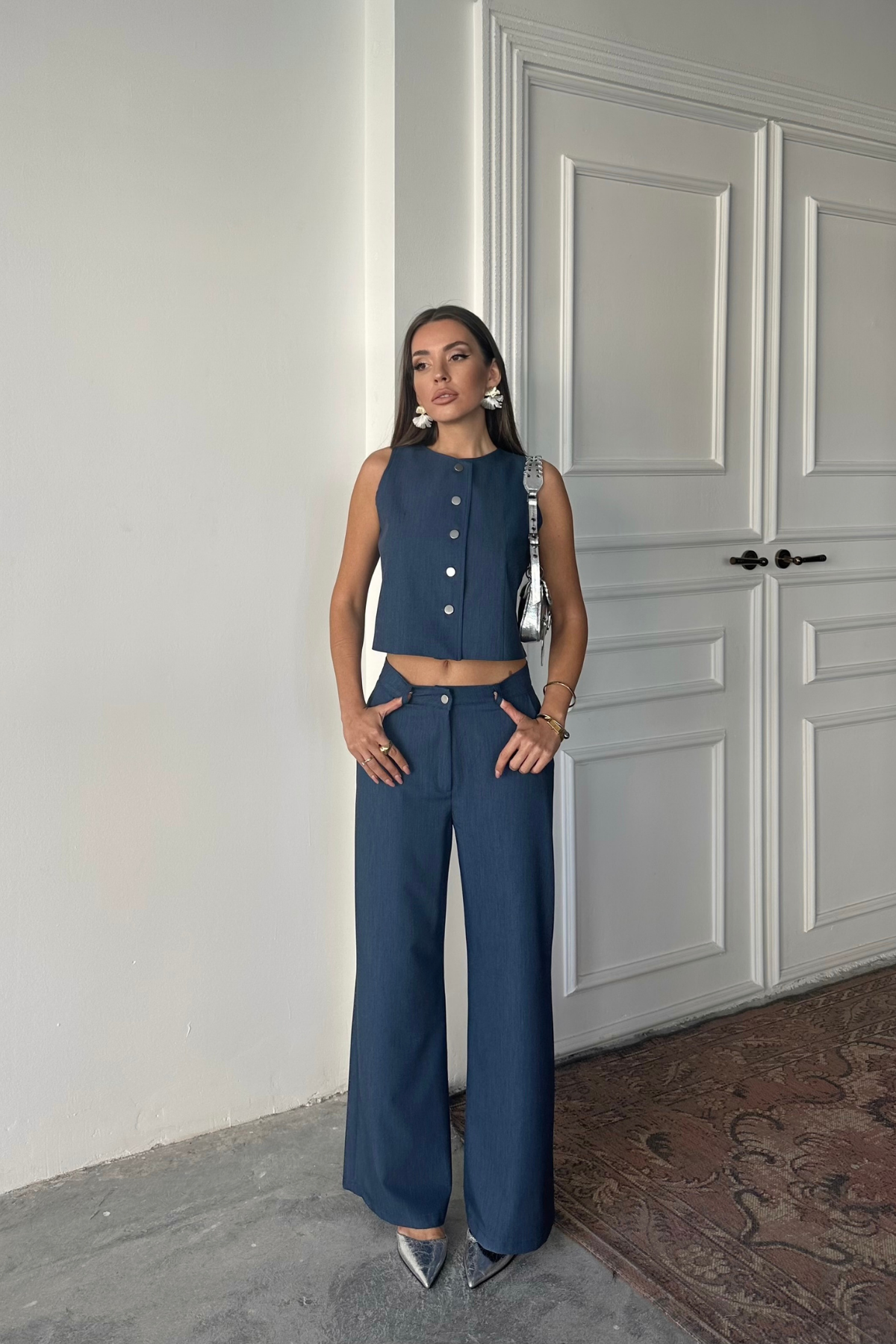 TENCEL KOLSUZ GÖMLEK - PANTOLON TAKIM - İndigo