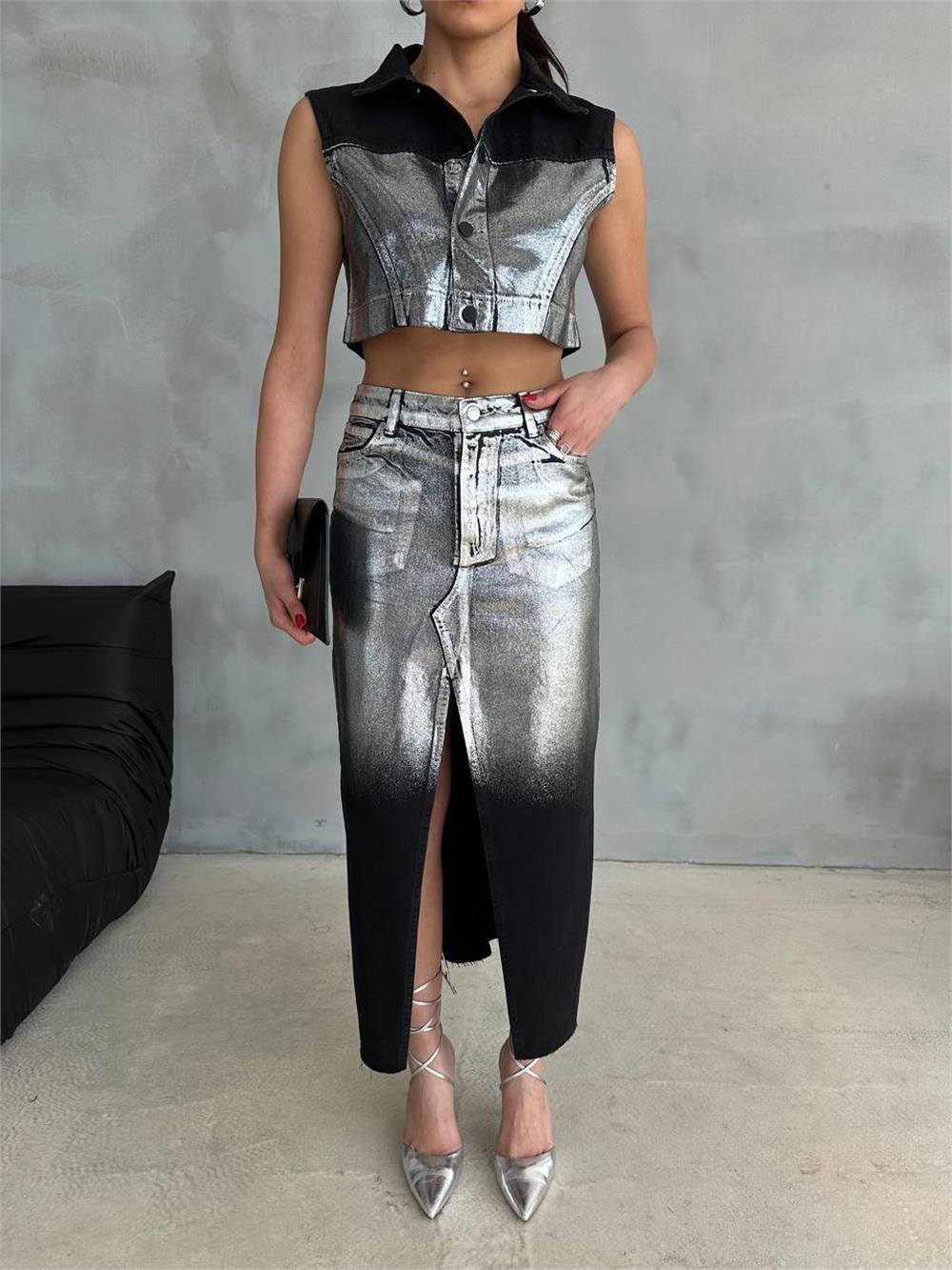 VARAKLI KOT ETEK TASARIM YIRTMAÇ - Siyah