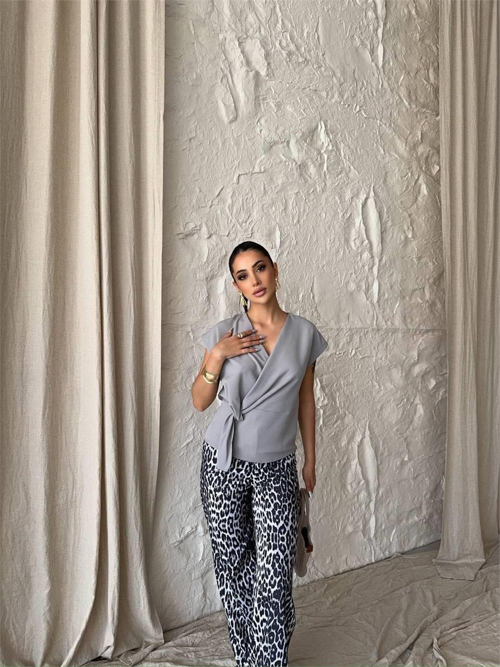 YANDAN BAĞLAMA DETAYLI KOLSUZ BLUZ - Gri