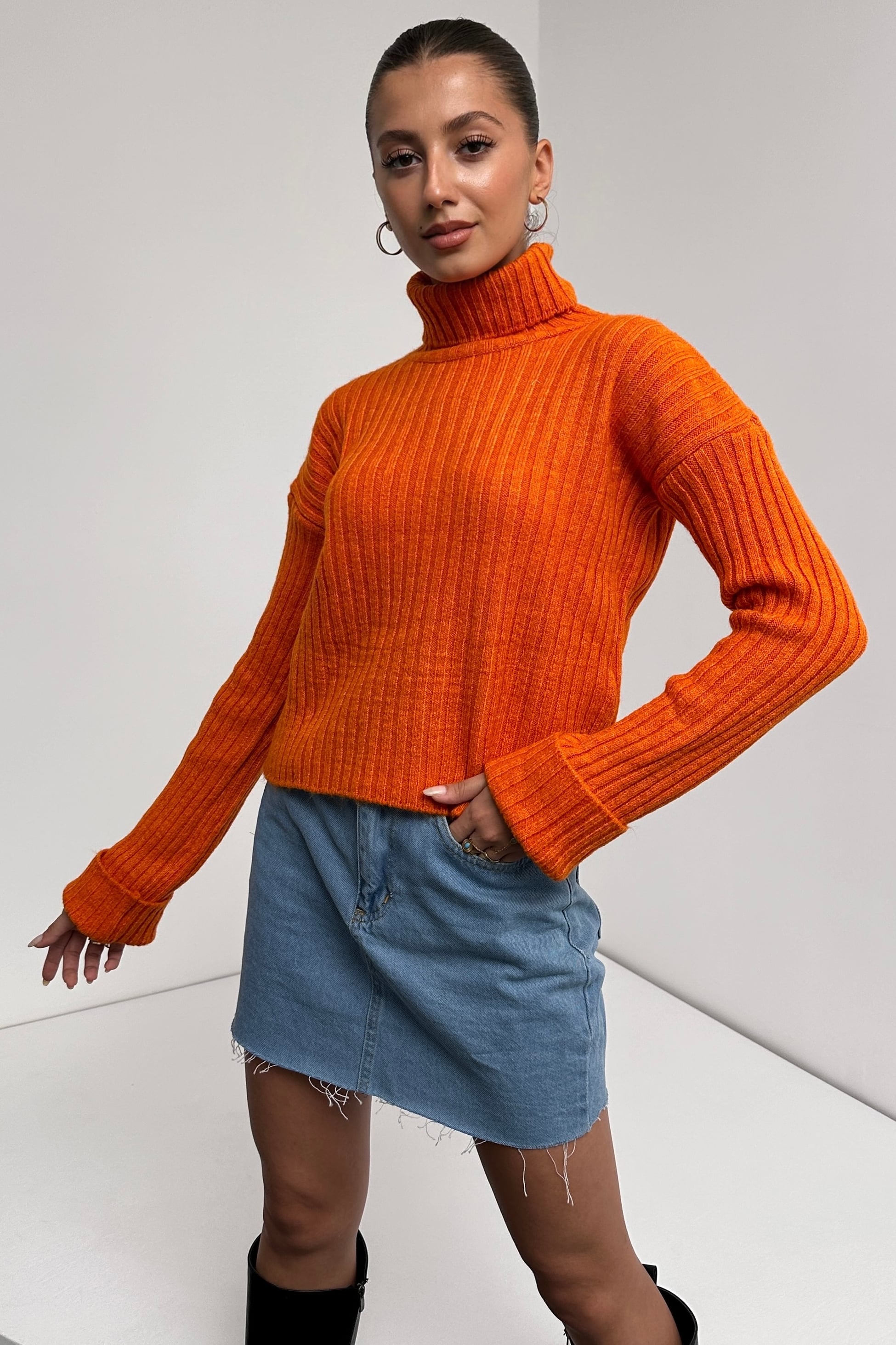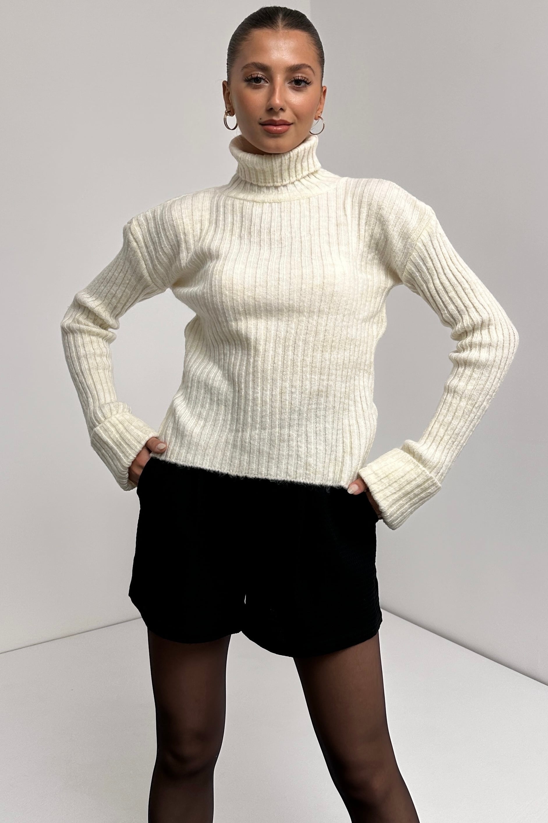 Şerit Desenli Dokulu Boğazlı Triko Kazak