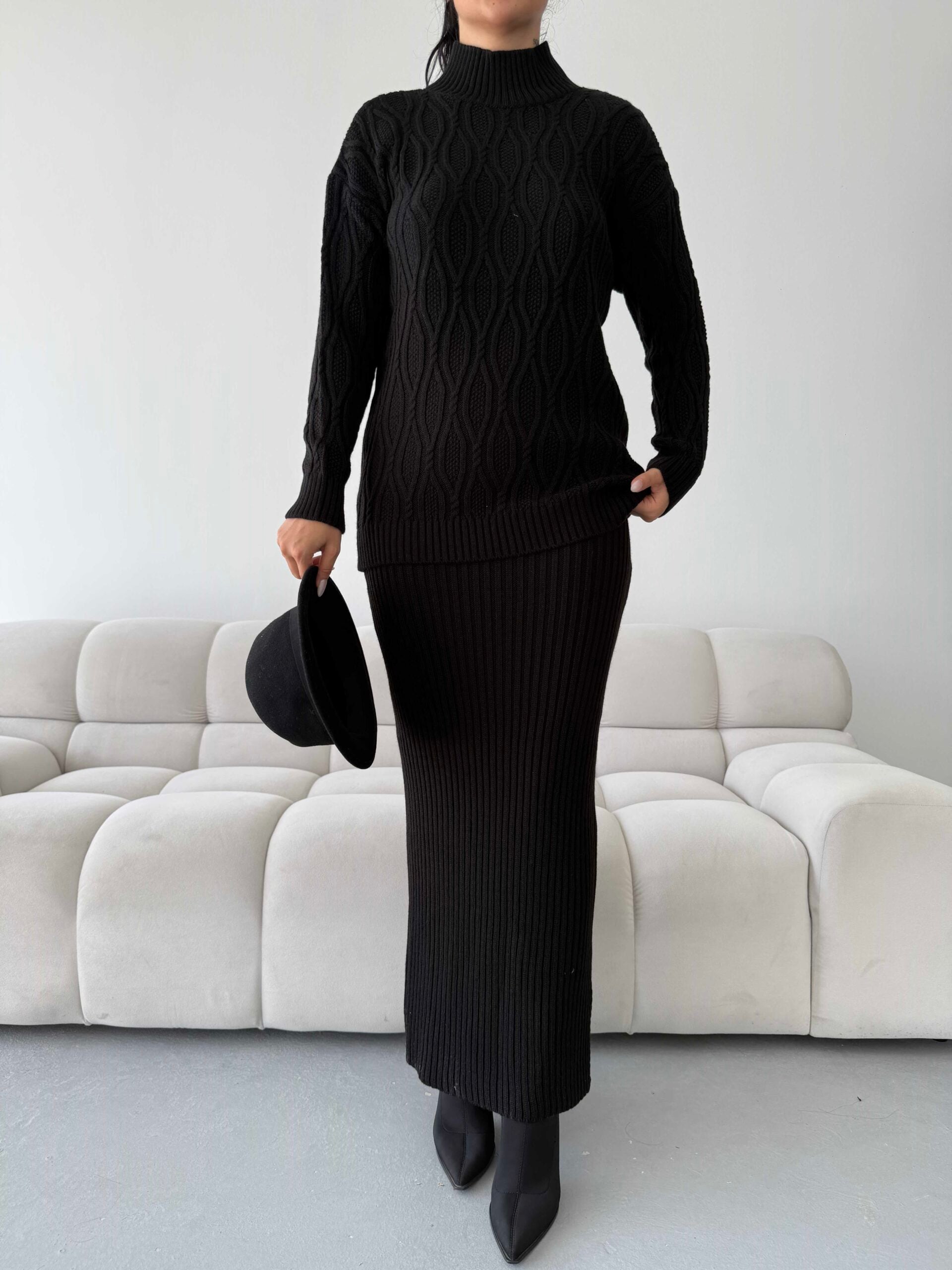 Ürün İçeriği: %30 Yün %70 Akrilik Model Bedeni: (S/M Beden) Eu:36-38 Us:4-6 Ürün Ölçüleri: Üst Hırka: Boy: 65 cm - En: 52cm - Kol Boyu: 50 cm - Omuz: 50 cm Alt Etek: Boy: 105 cm - Bel: 25 cm - Basen: 30 cmSeçenekleri belirleyin