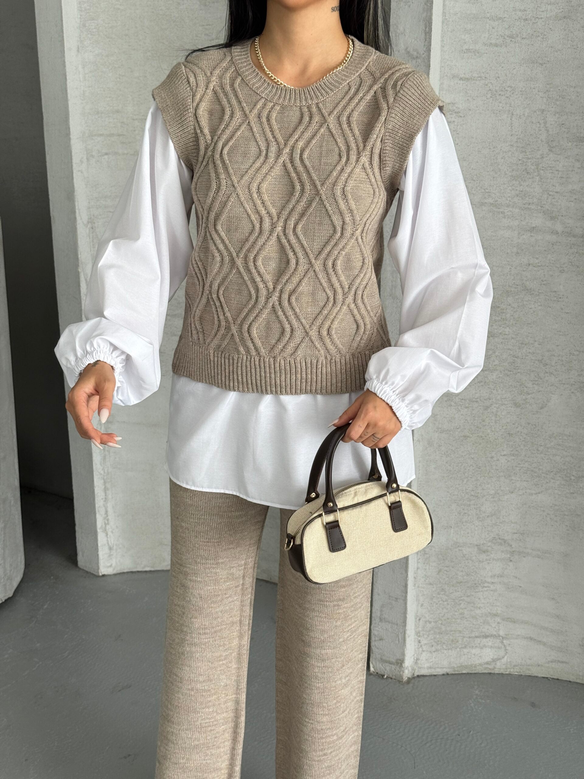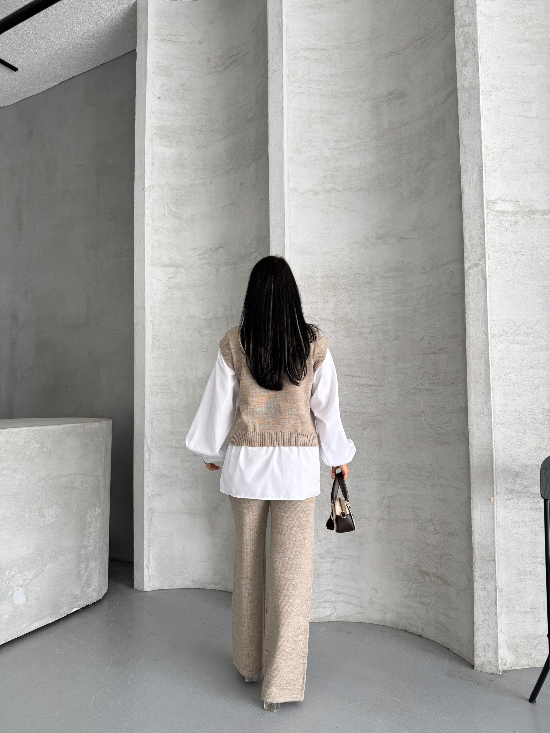 Ürün İçeriği: %30 Yün %70 Akrilik Model Bedeni: Standart Ürün Ölçüleri: Üst Kazak: Boy: 80 cm - En: 47 cm - Omuz: 40 cm - Kol Boyu: 60 cm Alt Pantolon: Bel: 30 cm - Basen: 45 cm - Boy: 107 cmSeçenekleri belirleyin