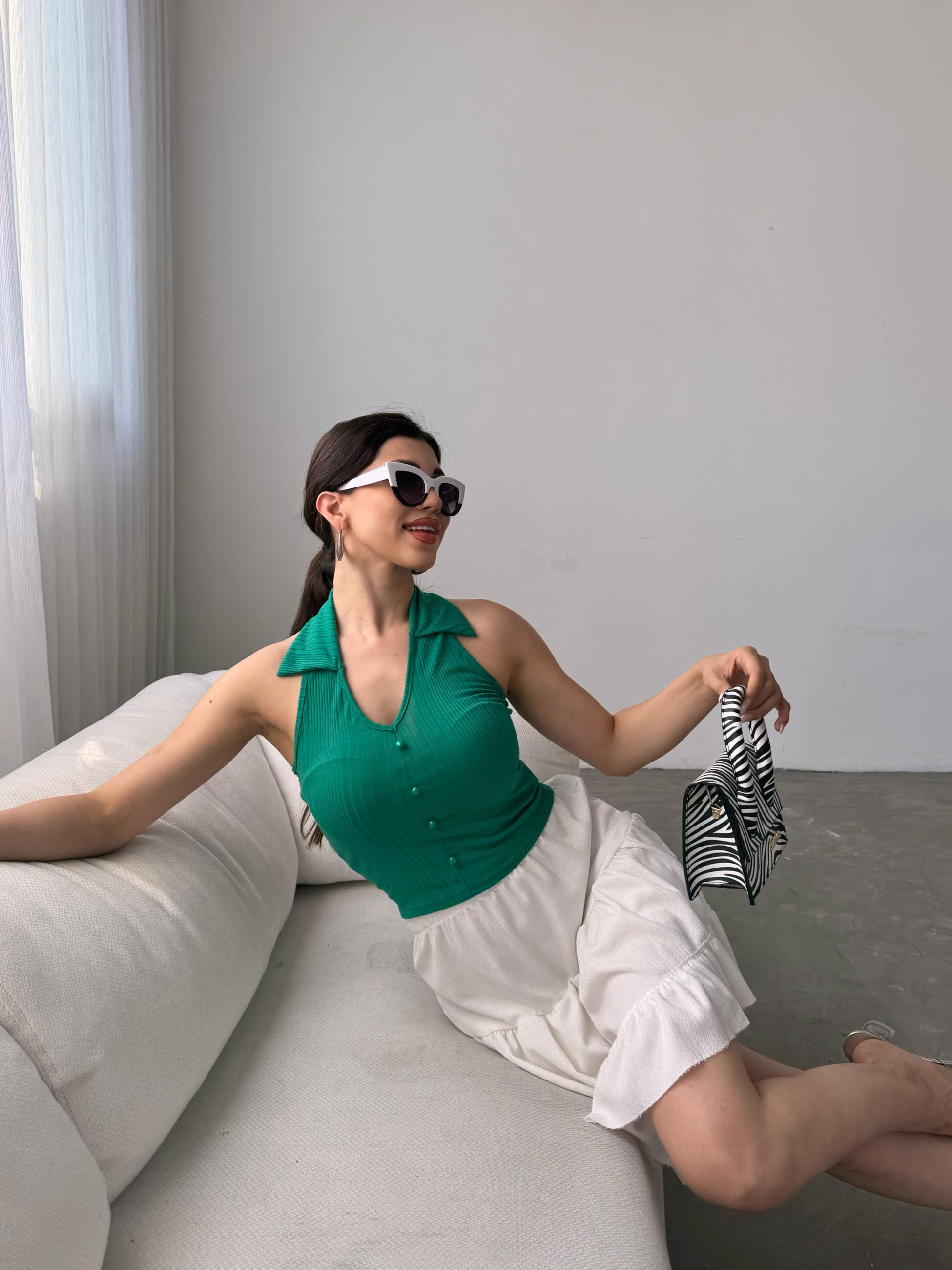 Ürün Adı :Gömlek Yaka Önü Düğme Detaylı Bluz