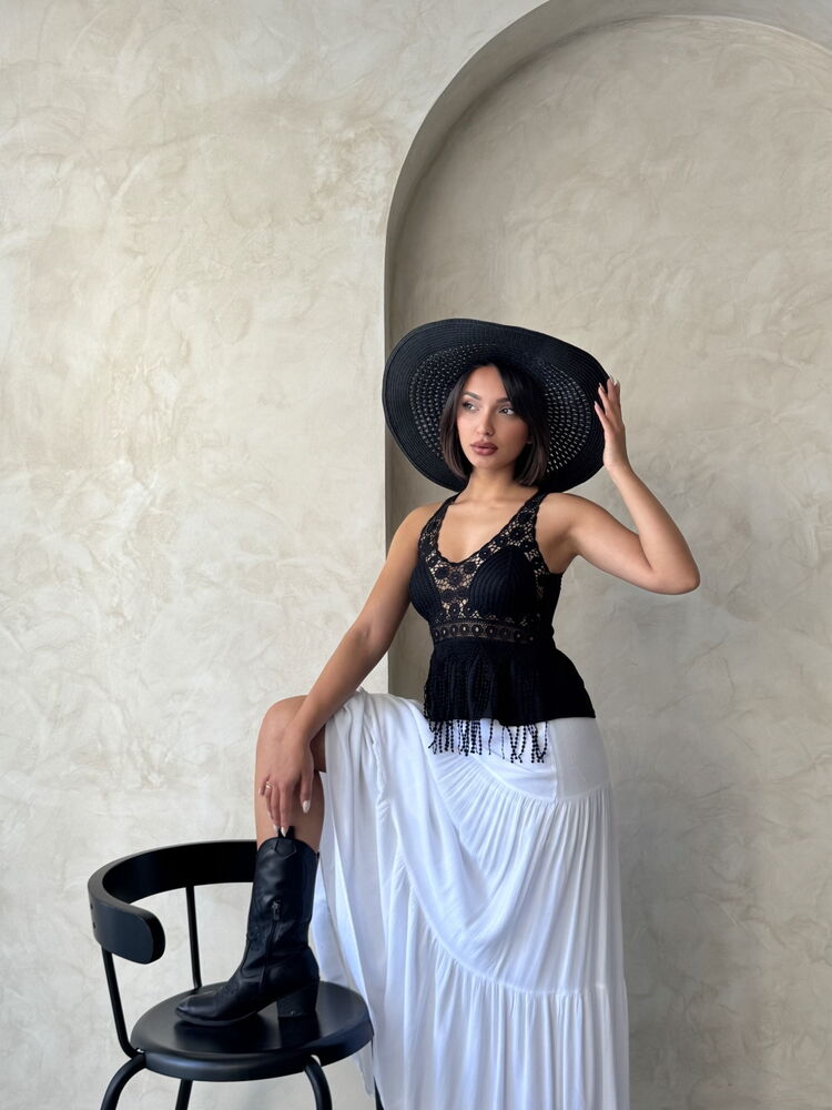 Güpür Detaylı Askılı Toptan Bluz Siyah