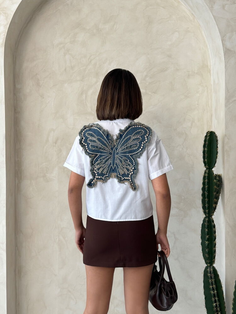 Kelebek Detaylı Toptan Gömlek Beyaz