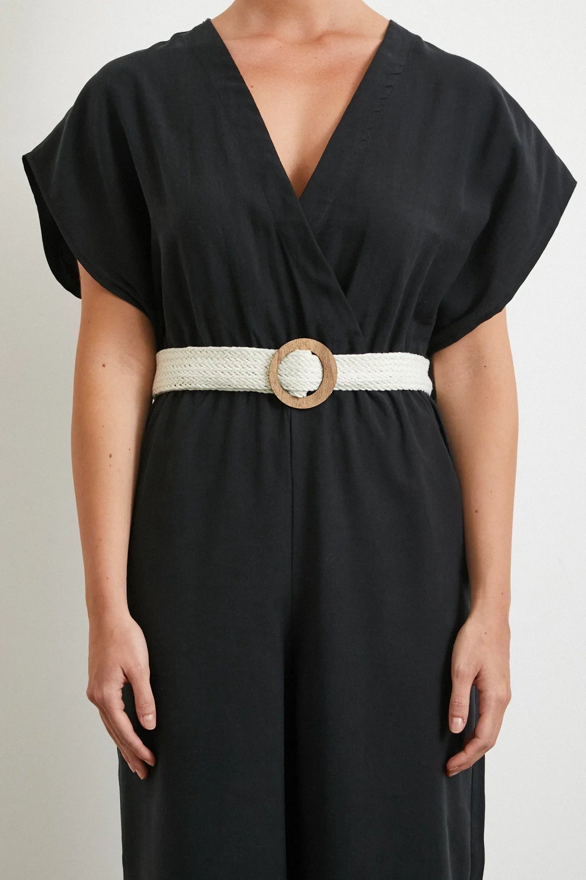 Kemer Detaylı Yarasa Kol Tulum - Siyah