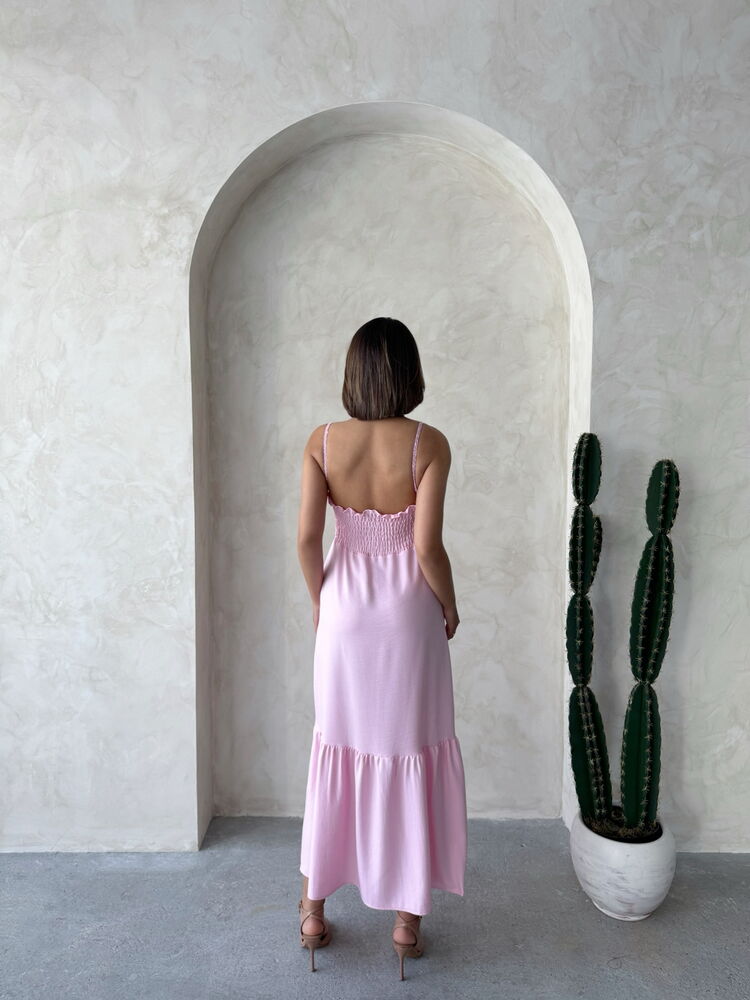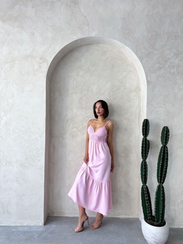 Keten Askılı V Yaka Boydan Elbise