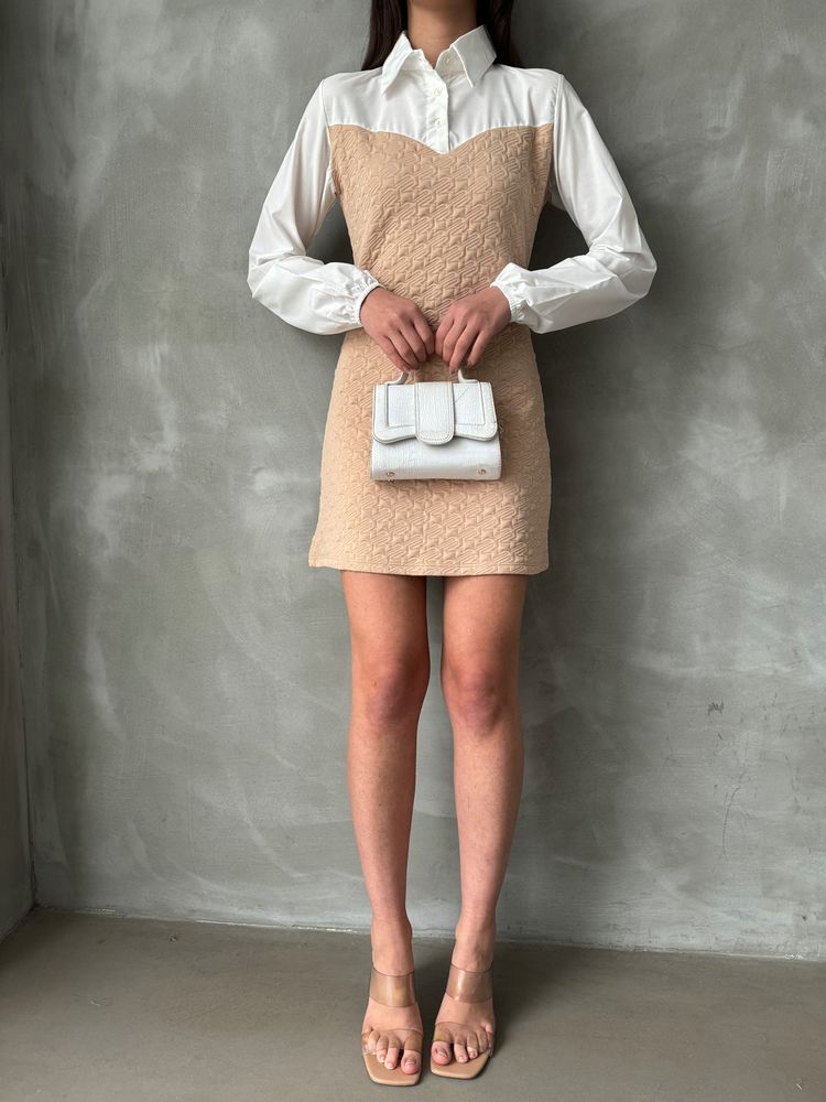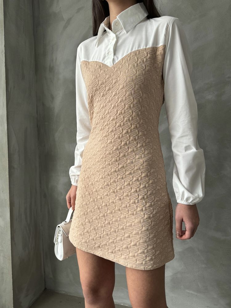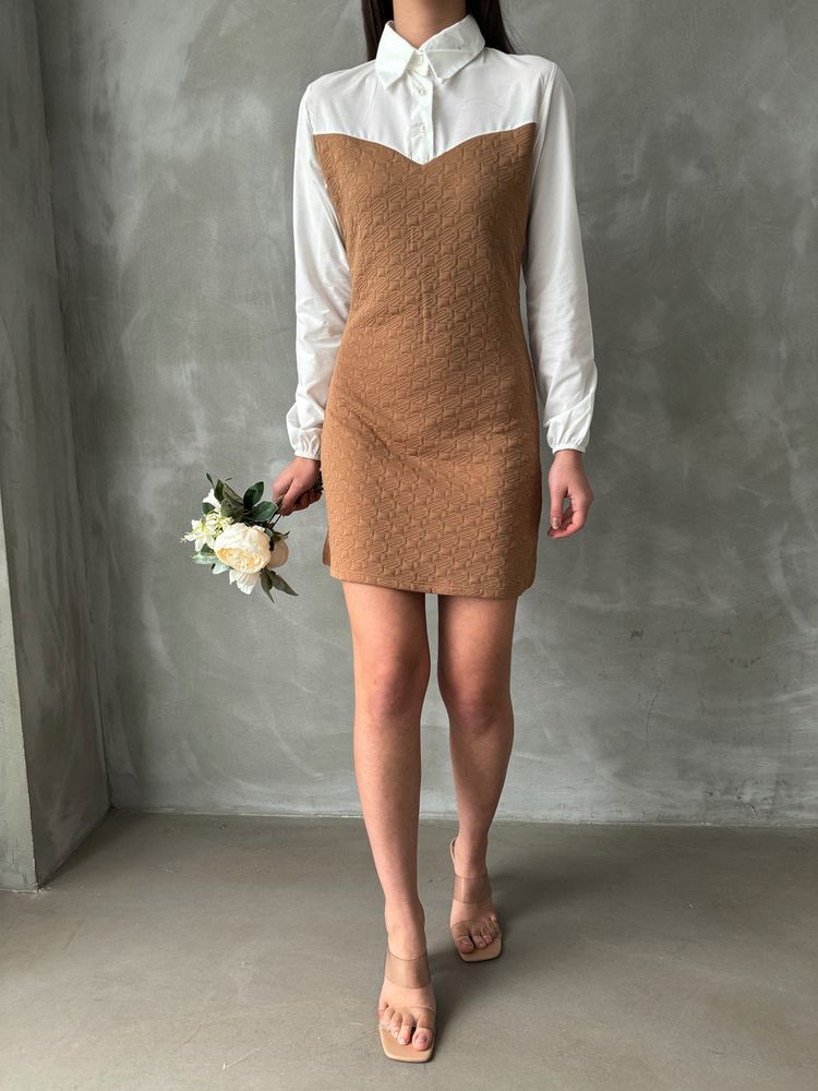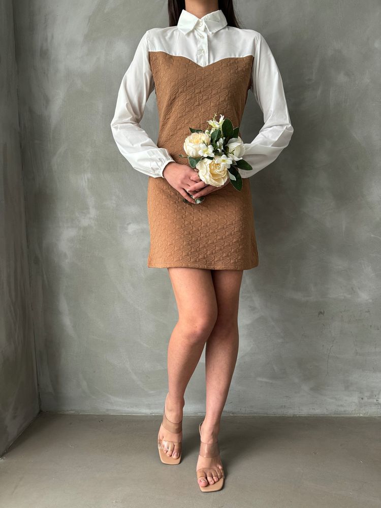 Kol Ve Göğüs Üstü Poplin Diz Üstü Toptan Elbise