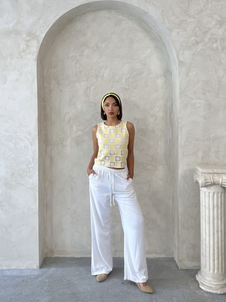 Kolsuz Dama Desen Tığ İşi Toptan Bluz