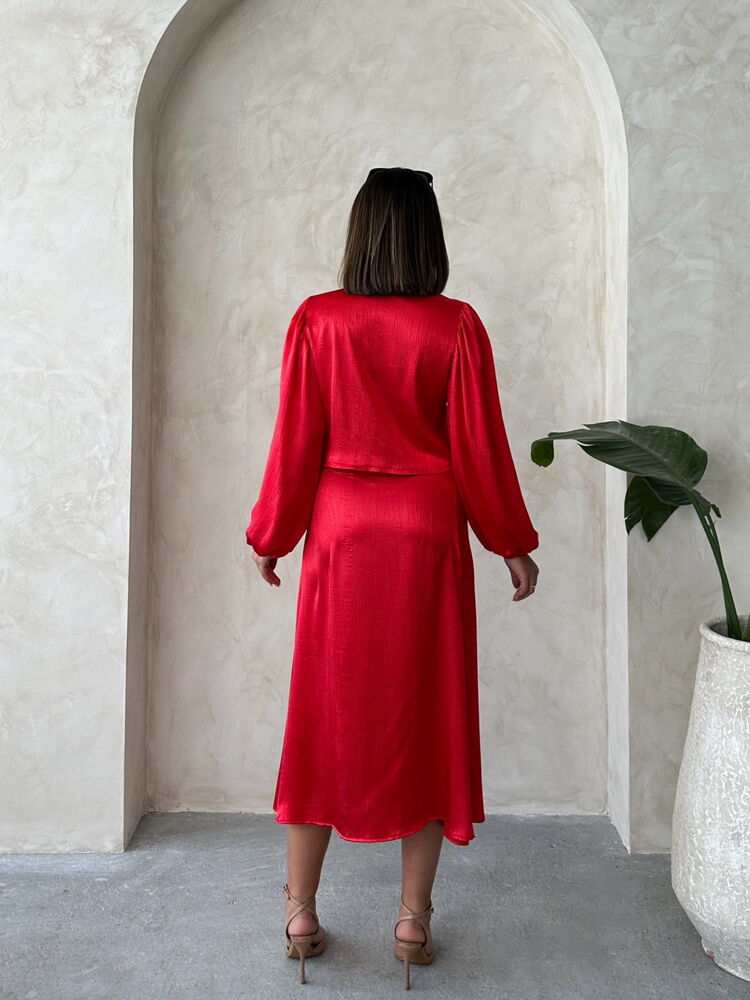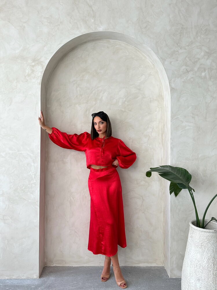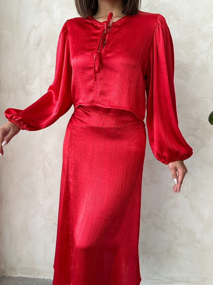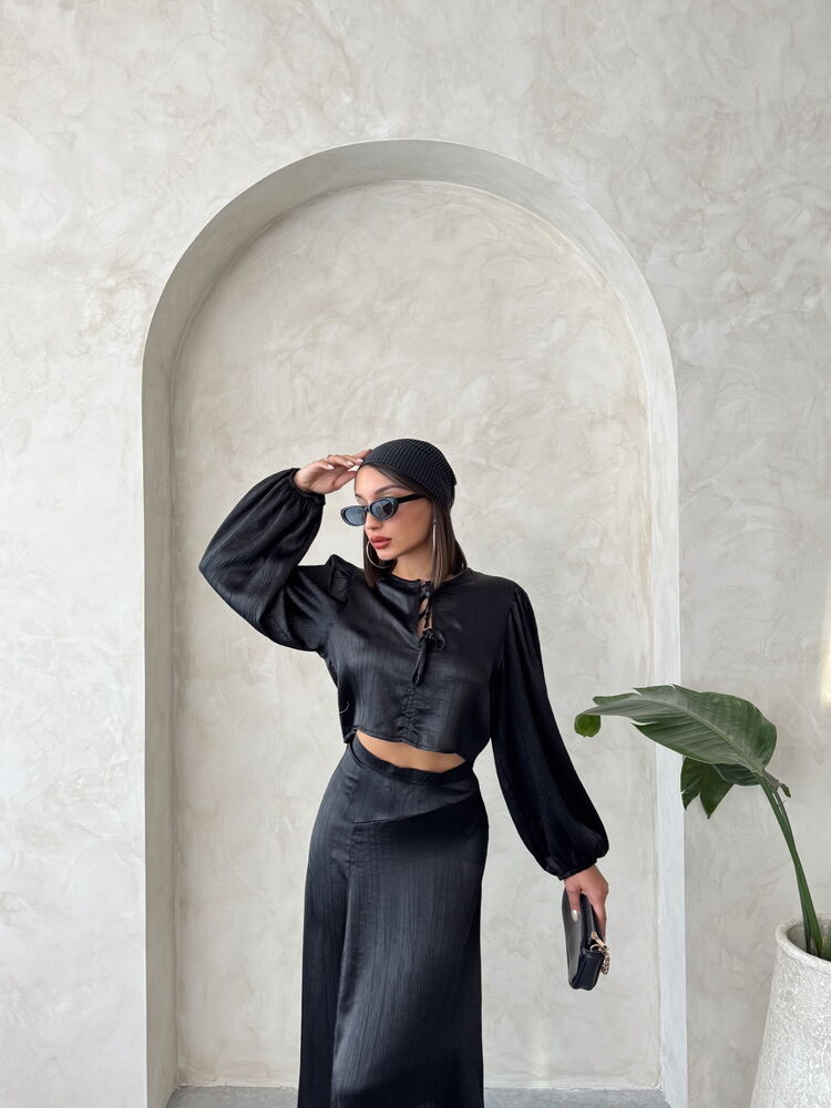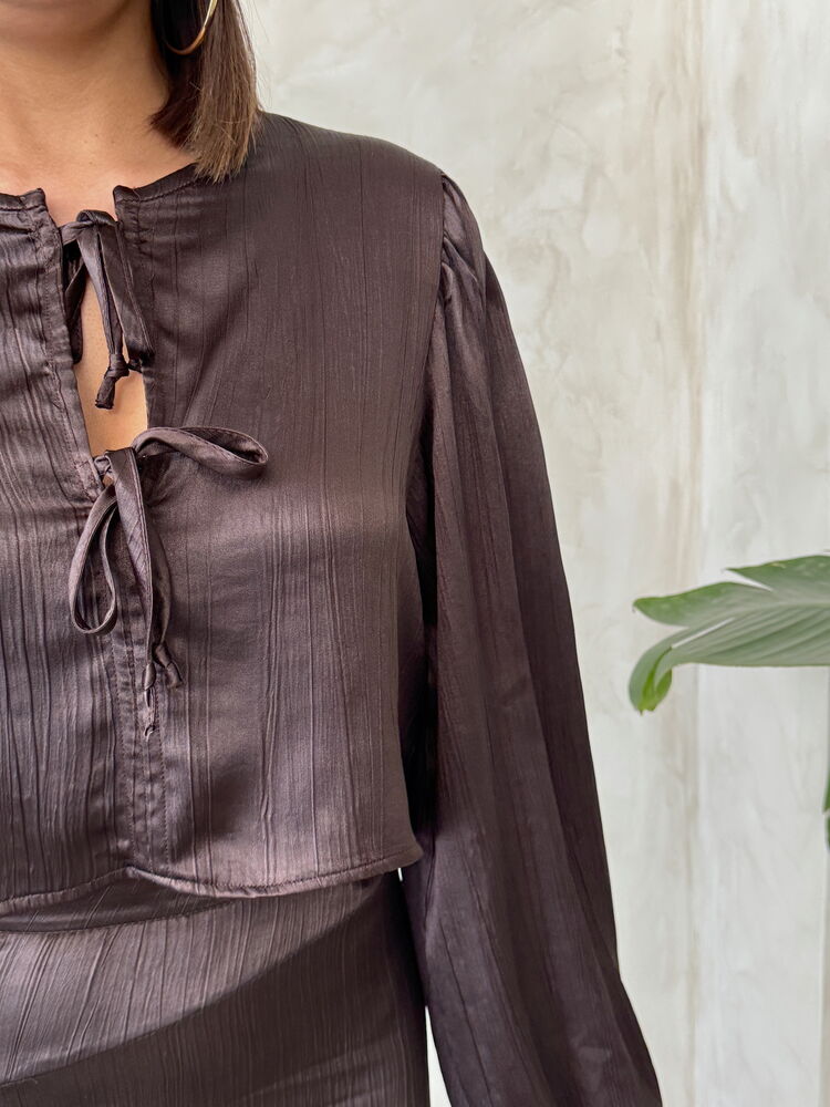 Kraşlı Saten Önden Bağlamalı Toptan Bluz