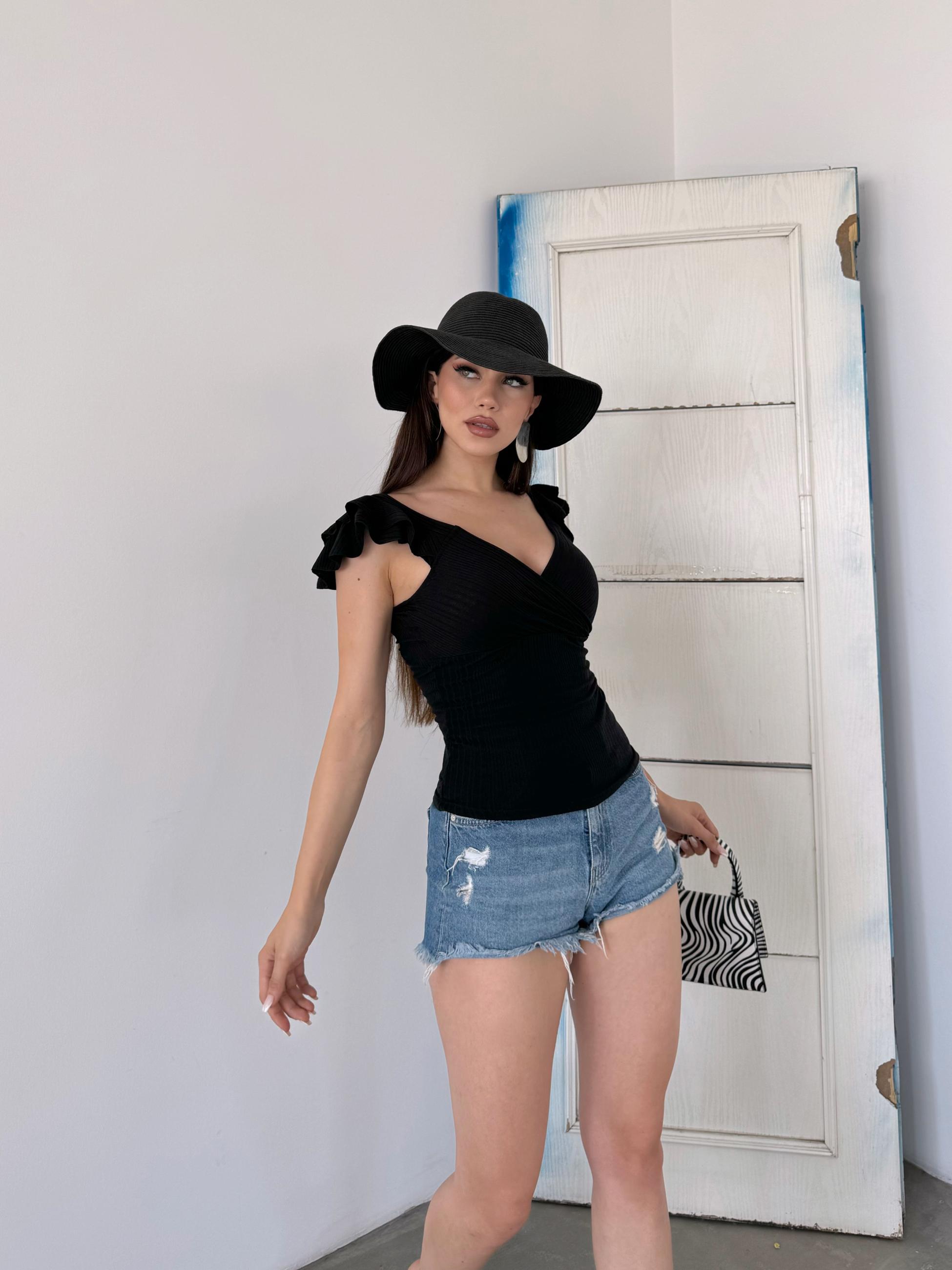 Ürün Adı :Kruvaze Yaka Omuzu Volanlı Bluz