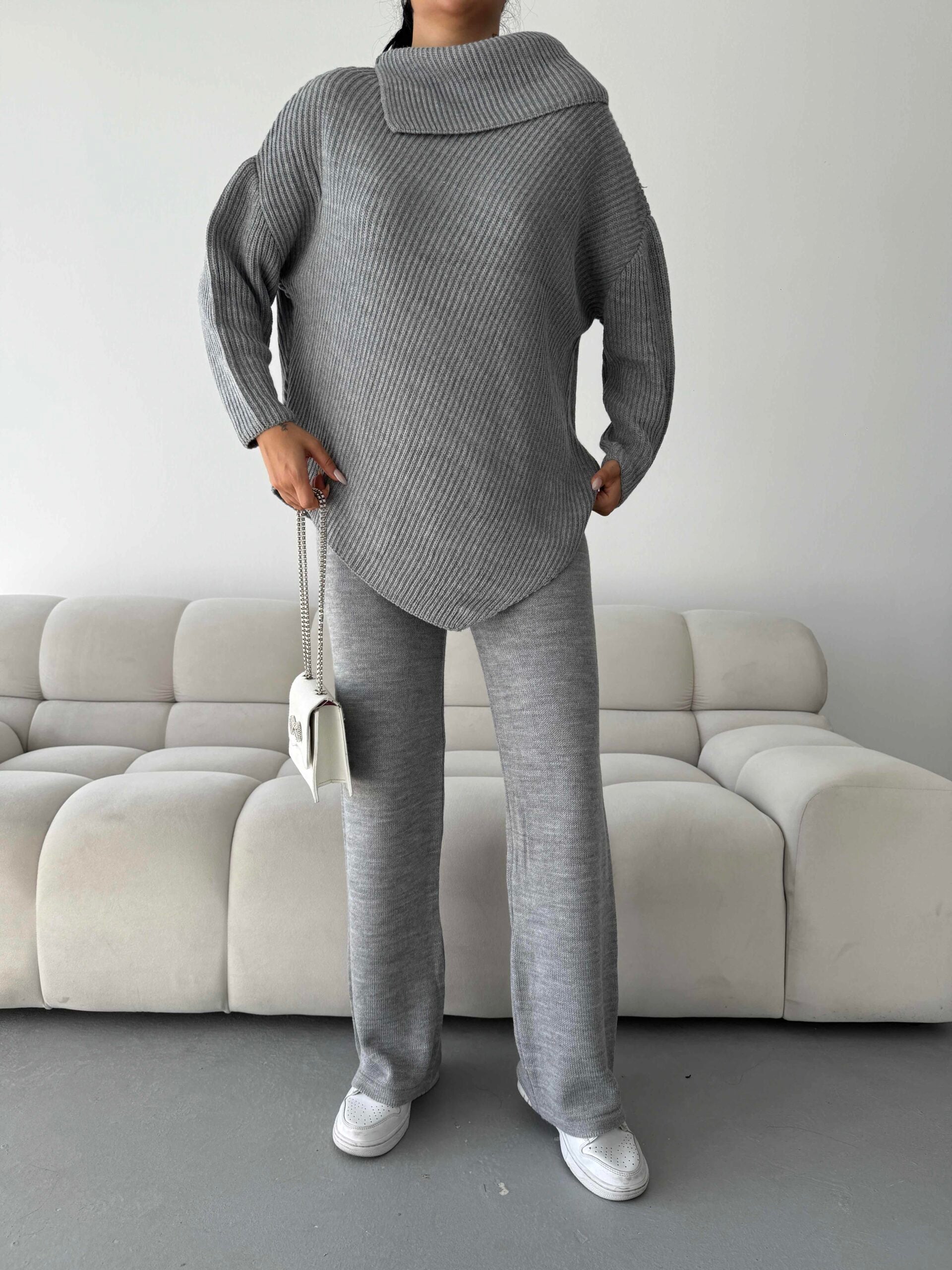 Ürün İçeriği: %30 Yün %70 Akrilik Model Bedeni: (S/M Beden) Eu:36-38 Us:4-6 Ürün Ölçüleri: Üst Kazak: Boy: 75 cm - En: 70 cm - Kol Boyu: 34 cm Alt Pantolon Bel: 25 cm - Basen: 46 cm - Boy: 97 cmSeçenekleri belirleyin