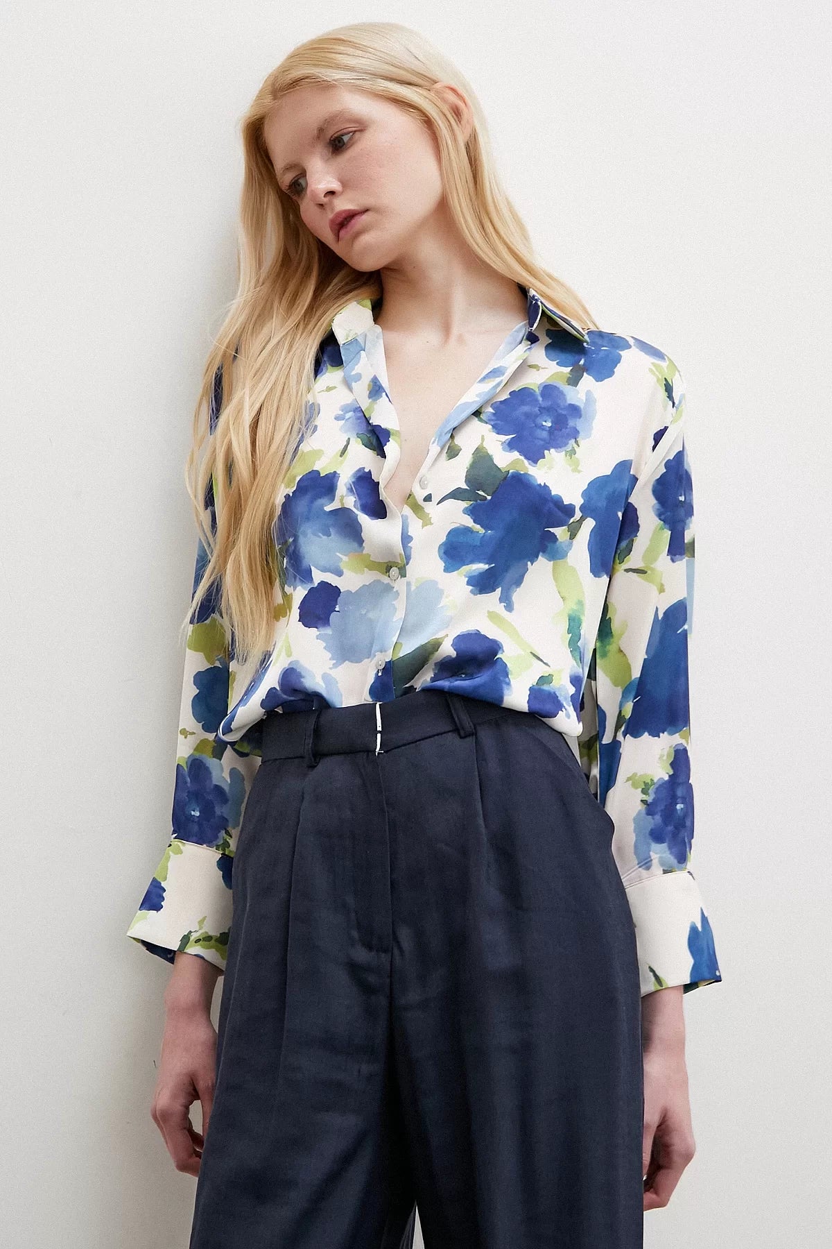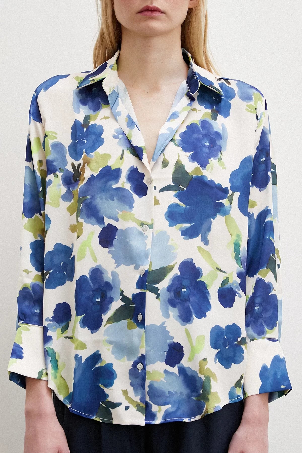 Çok Renkli Çiçek Desenli Gömlek - Mavi