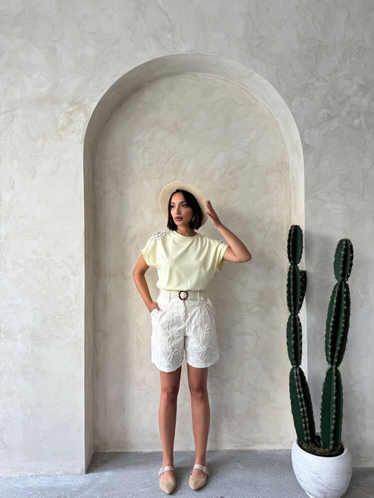 Omuzu Dantelli t - Shirt - Sarı