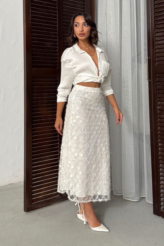 Pul Detaylı Abiye Midi Etek