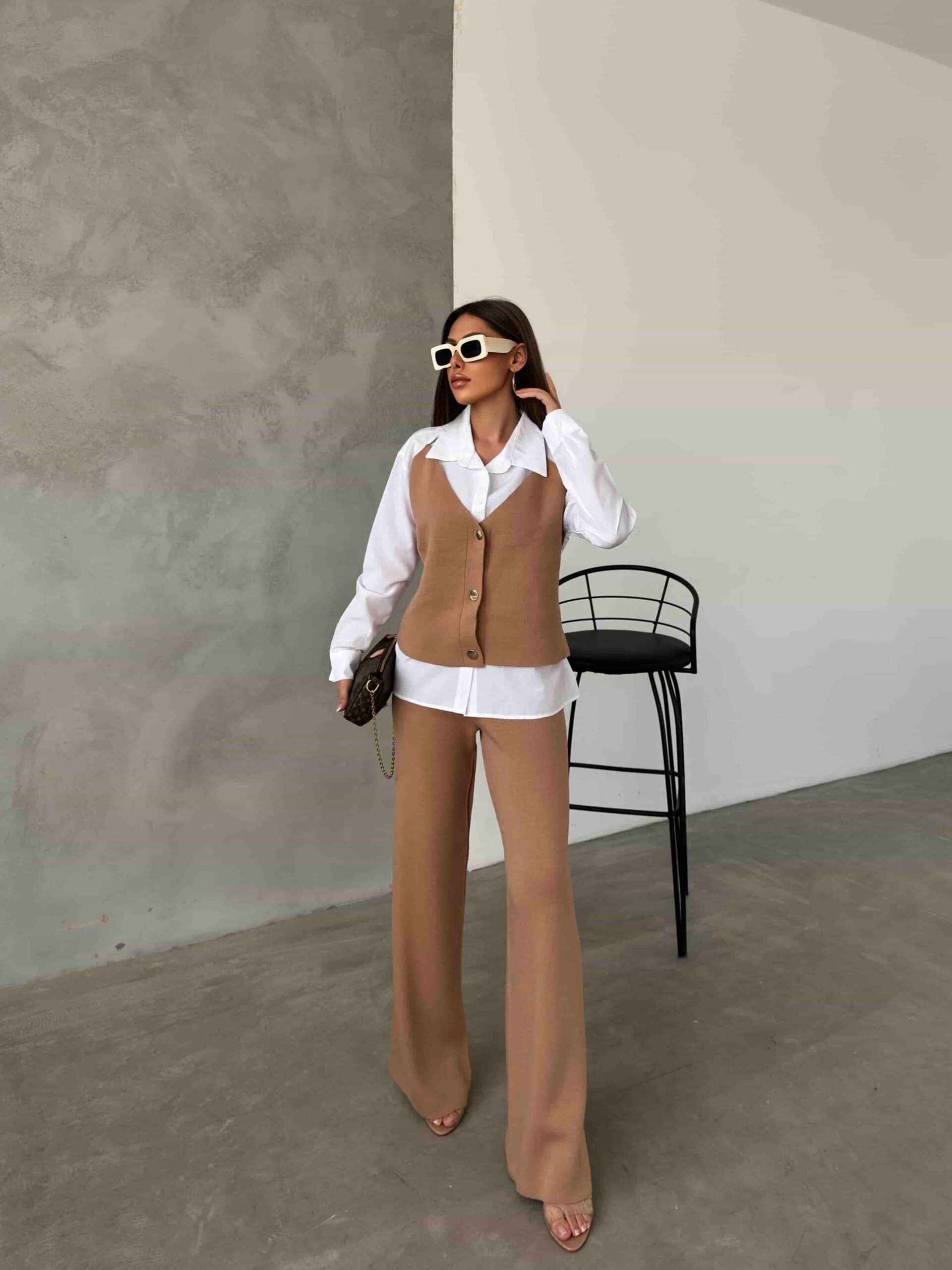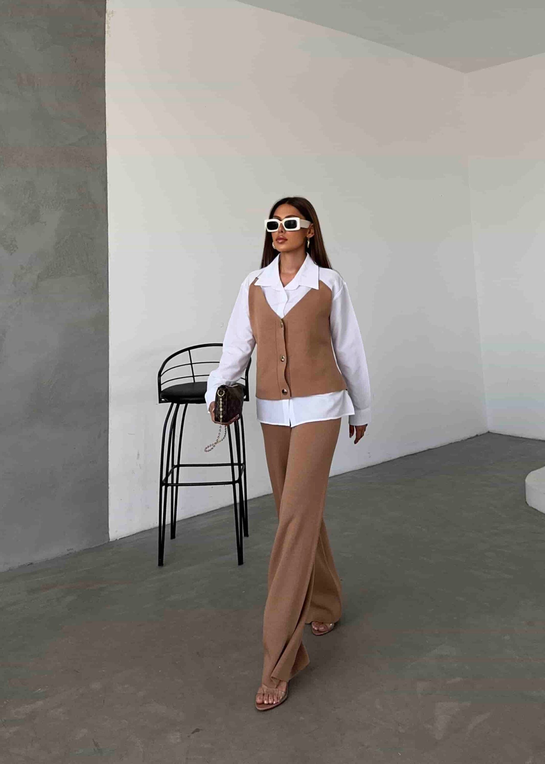 Ürün İçeriği: %30 Yün %70 Akrilik Model Bedeni: (S Beden) Eu:36 Us:4 Ürün Ölçüleri: Üst Gömlek: Boy: 60 cm - En: 55 cm - Etek Ucu: 57 cm - Kol Boyu: 52 cm Alt Pantolon Bel: 35 cm - Basen: 50 cm - Boy: 105 cmSeçenekleri belirleyin