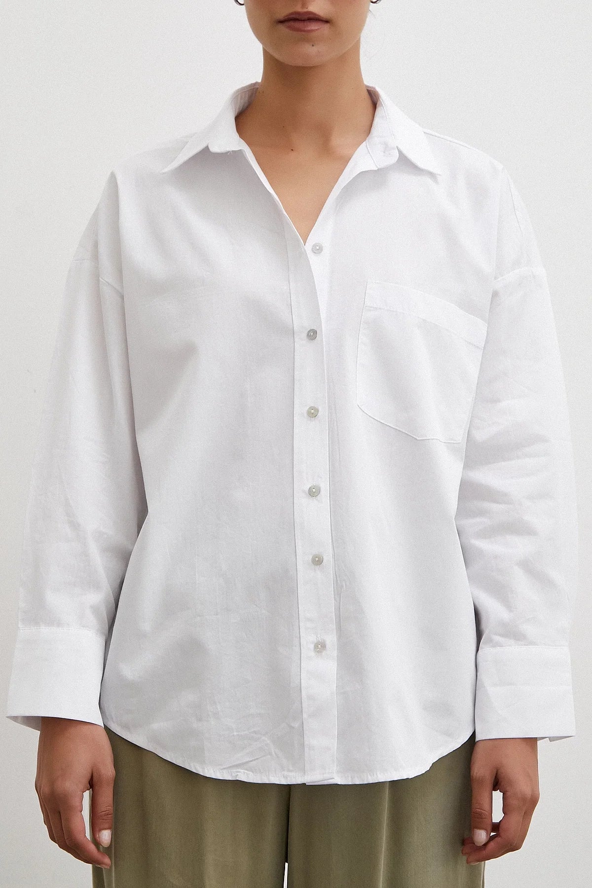 Tek Cepli Oversize Gömlek - Beyaz