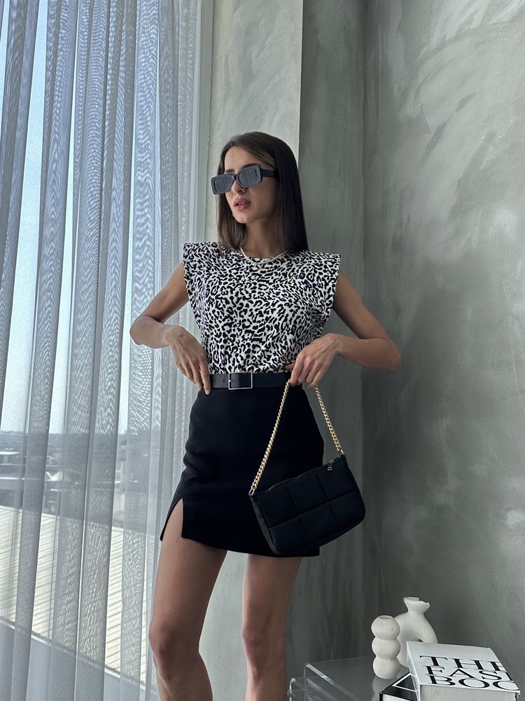 Topshow Beyaz Leopar Leopar Baskılı Toptan Bluz