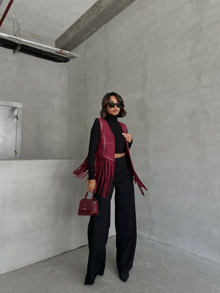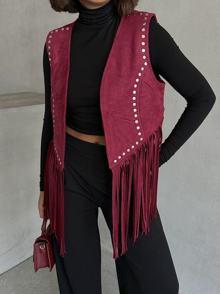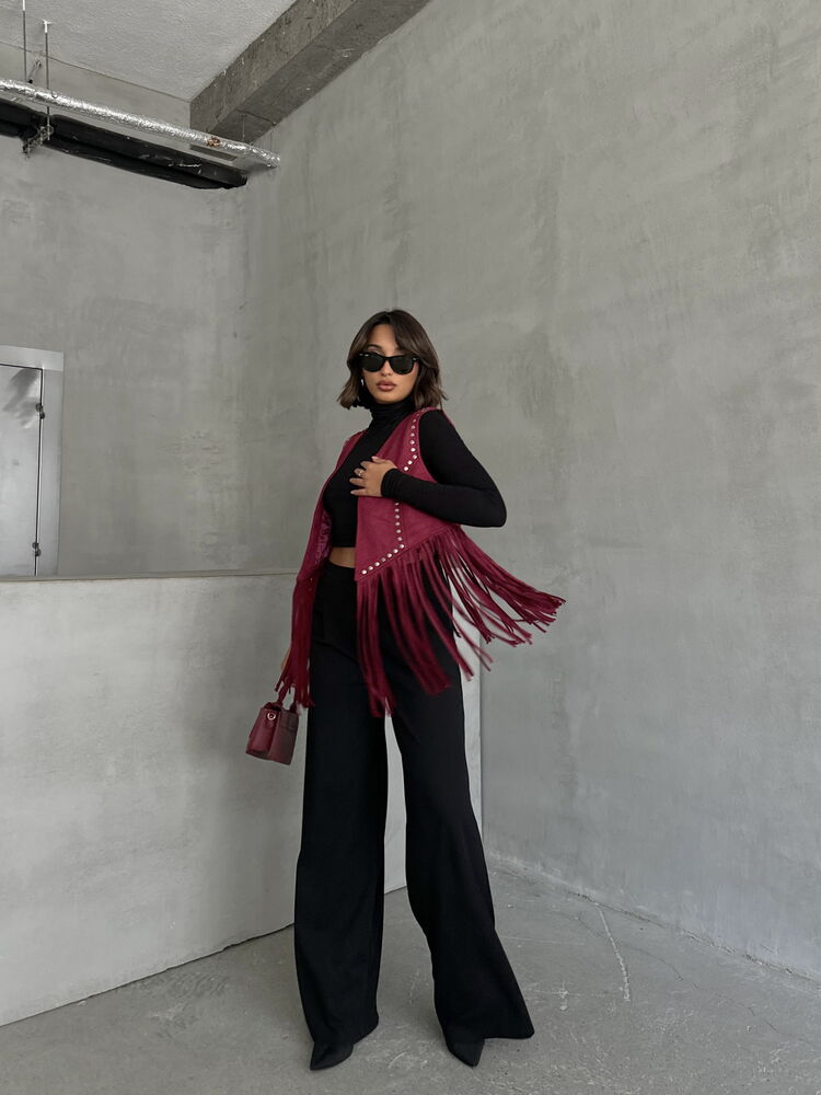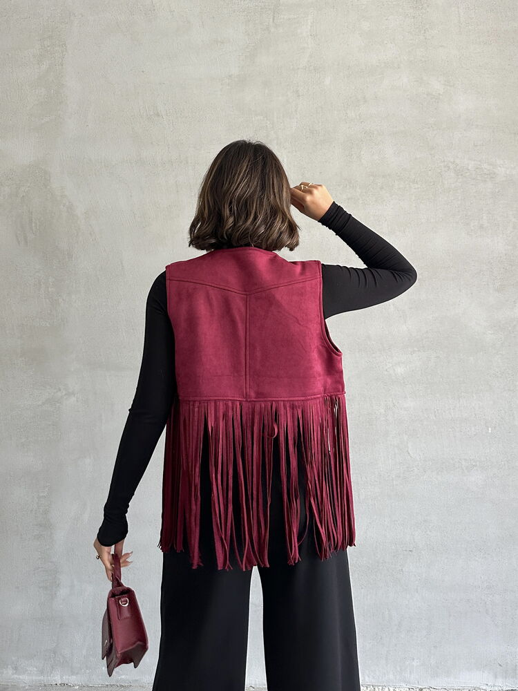 Topshow Bordo Püsküllü Droplu Toptan Yelek