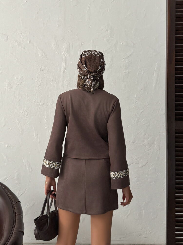Topshow Şerit Detaylı Scuba Süet Fermuarlı Ceket