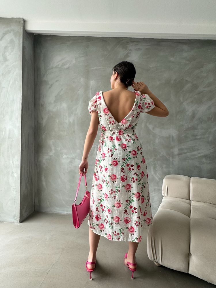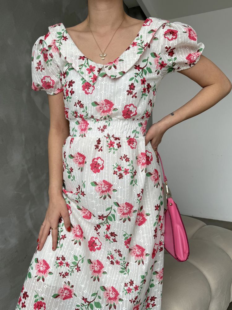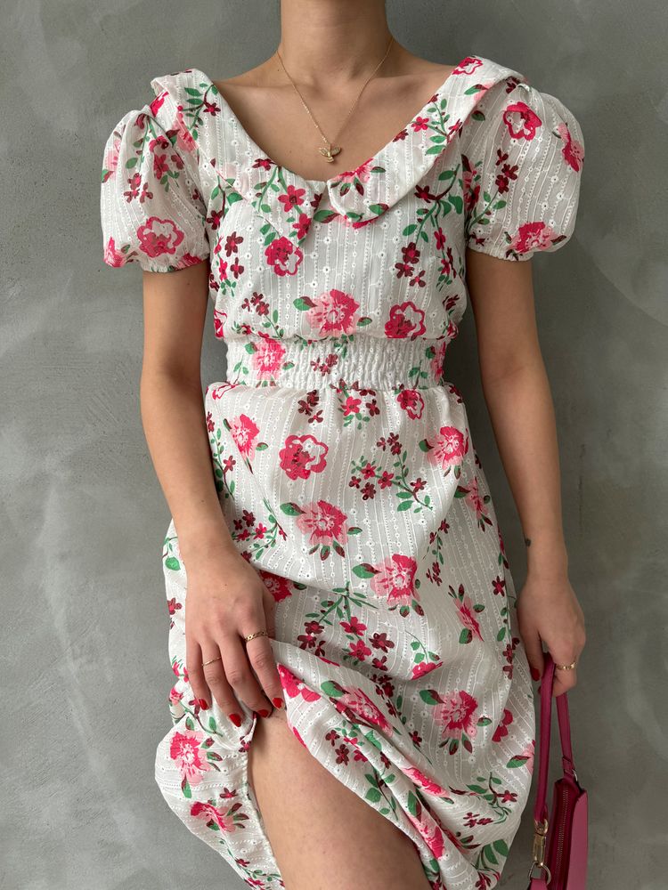 Topshow Fuşya Brode Detaylı Desenli Toptan Elbise