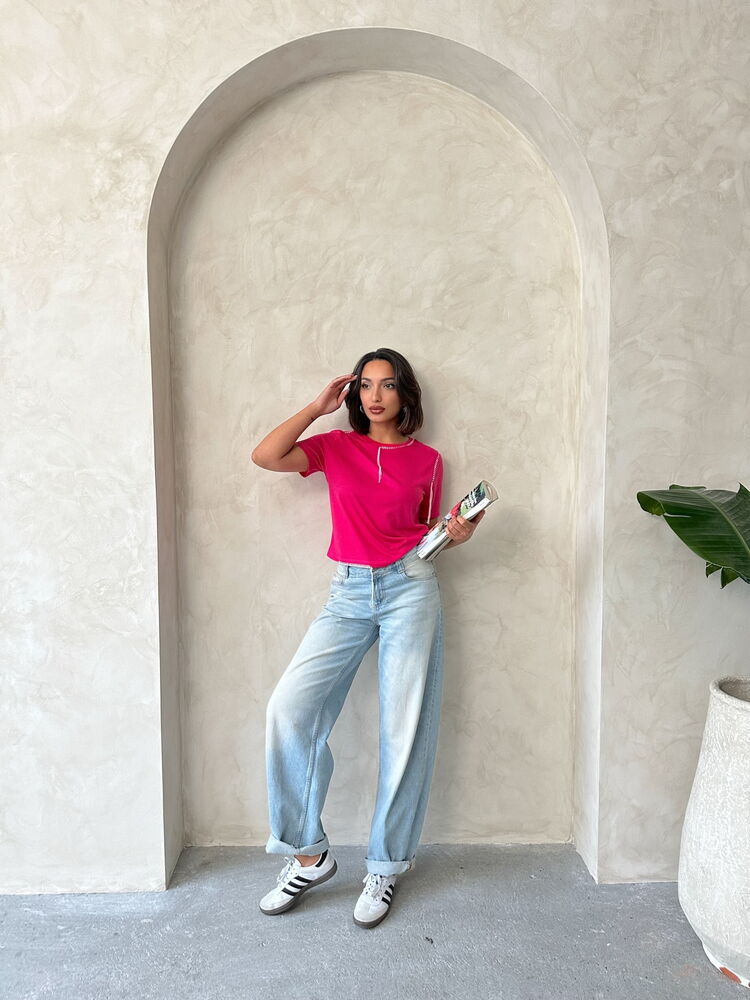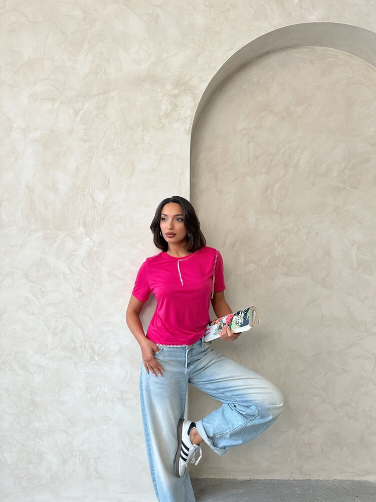 Topshow Fuşya Çoban Dikişli Toptan Tişört
