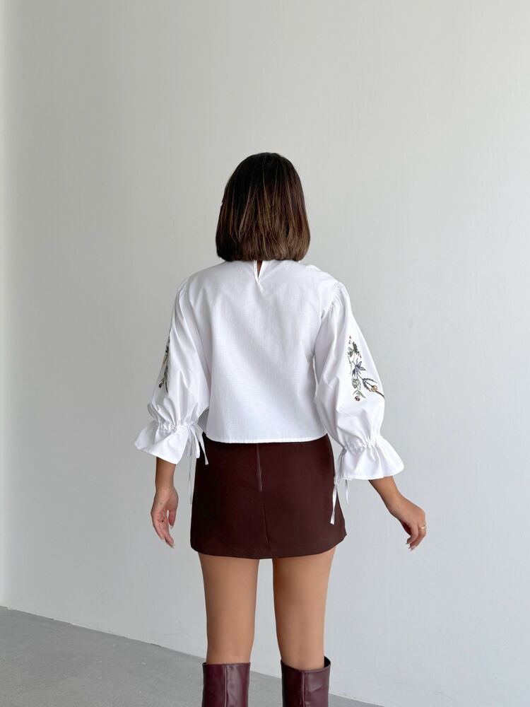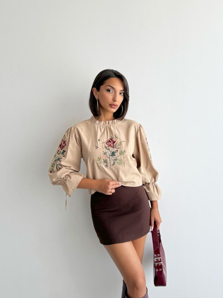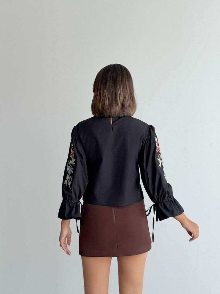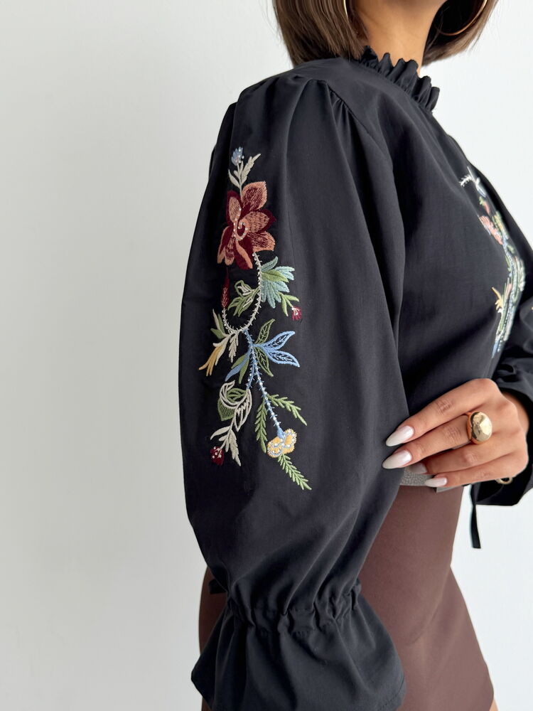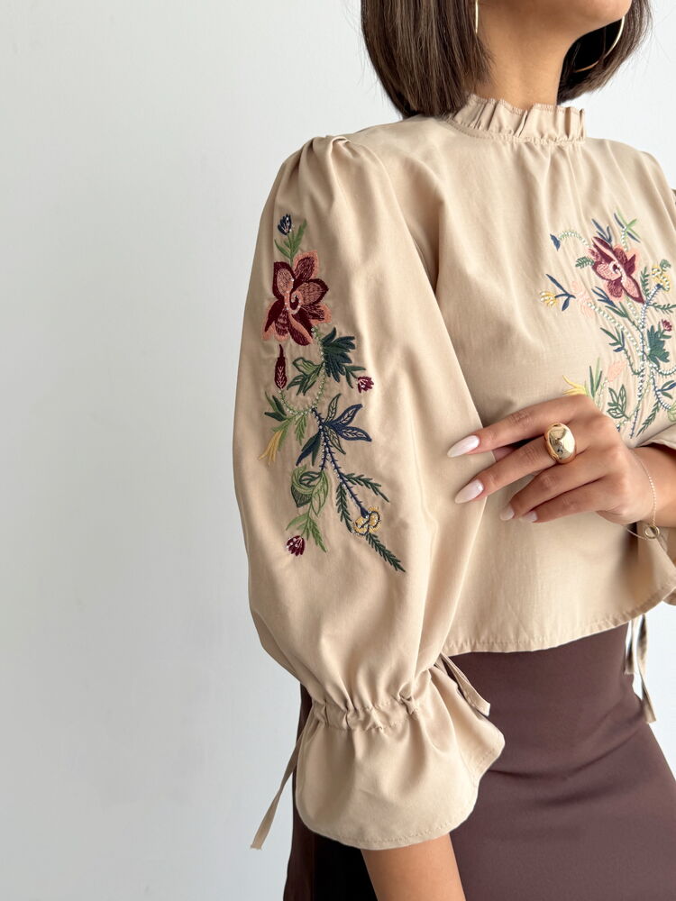 Topshow Çiçek Nakışlı Uzun Kol Toptan Bluz