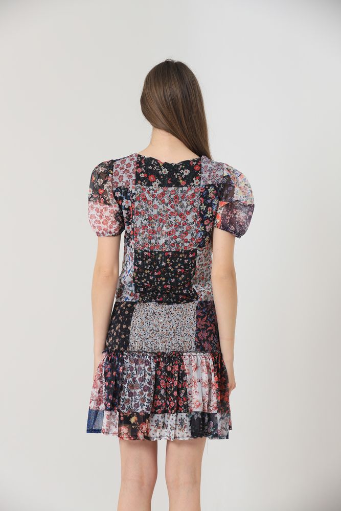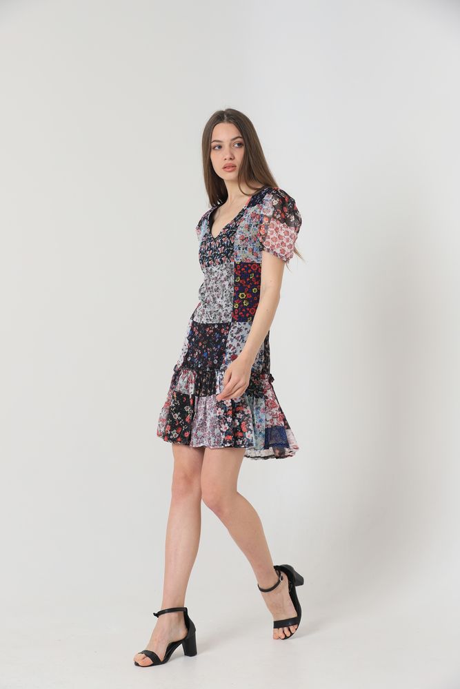 Topshow Karışık Çiçekli V Yaka Kısa Kollu Toptan Elbise