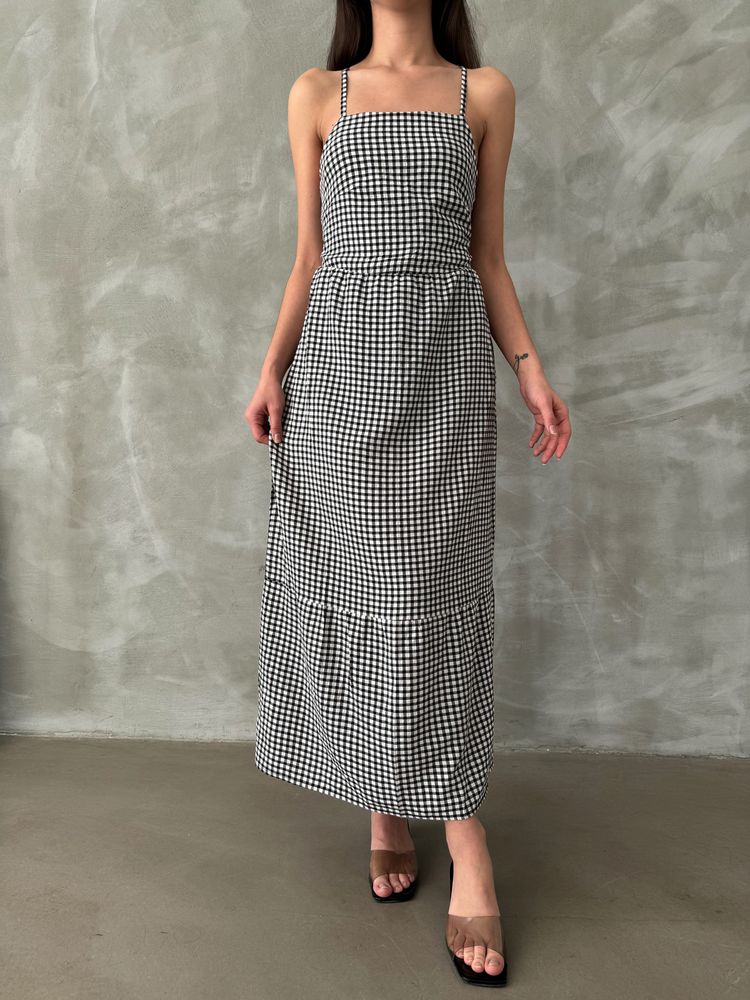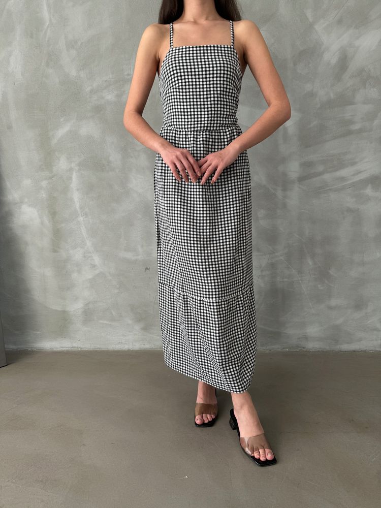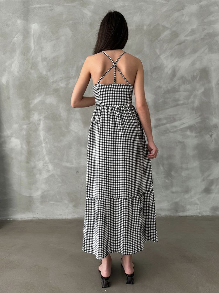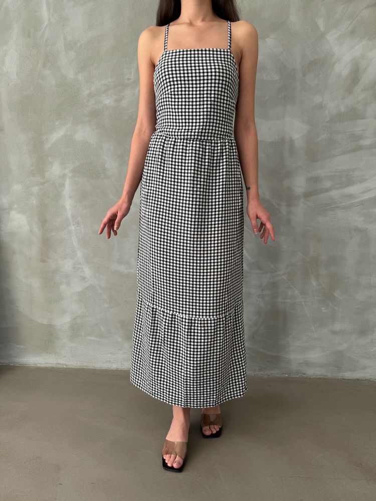 Topshow Siyah Askılı Bileğe Kadar Toptan Elbise