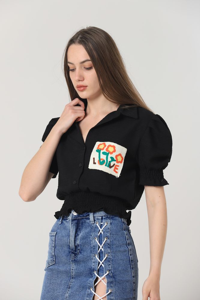 Topshow Siyah Çep Nakışlı Toptan Gömlek