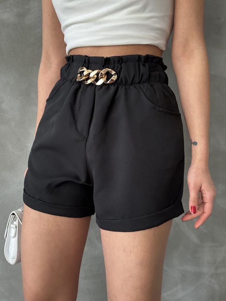 Topshow Siyah Kemer Üstü Halkalı Cepli Toptan Şort