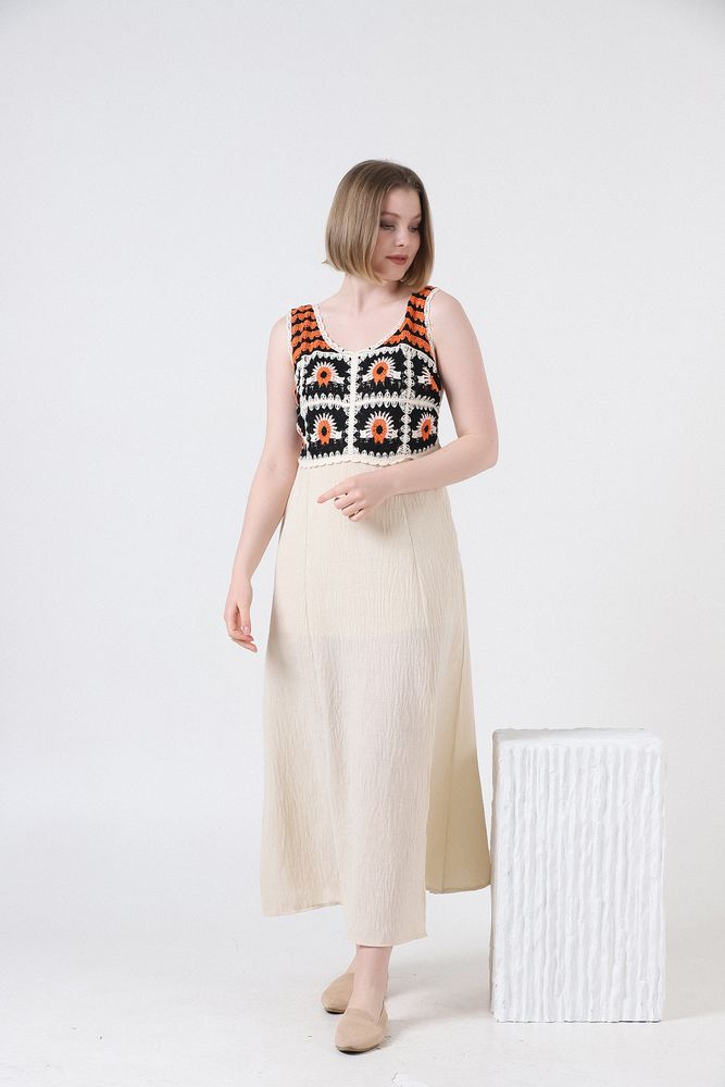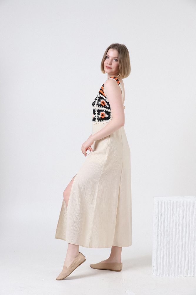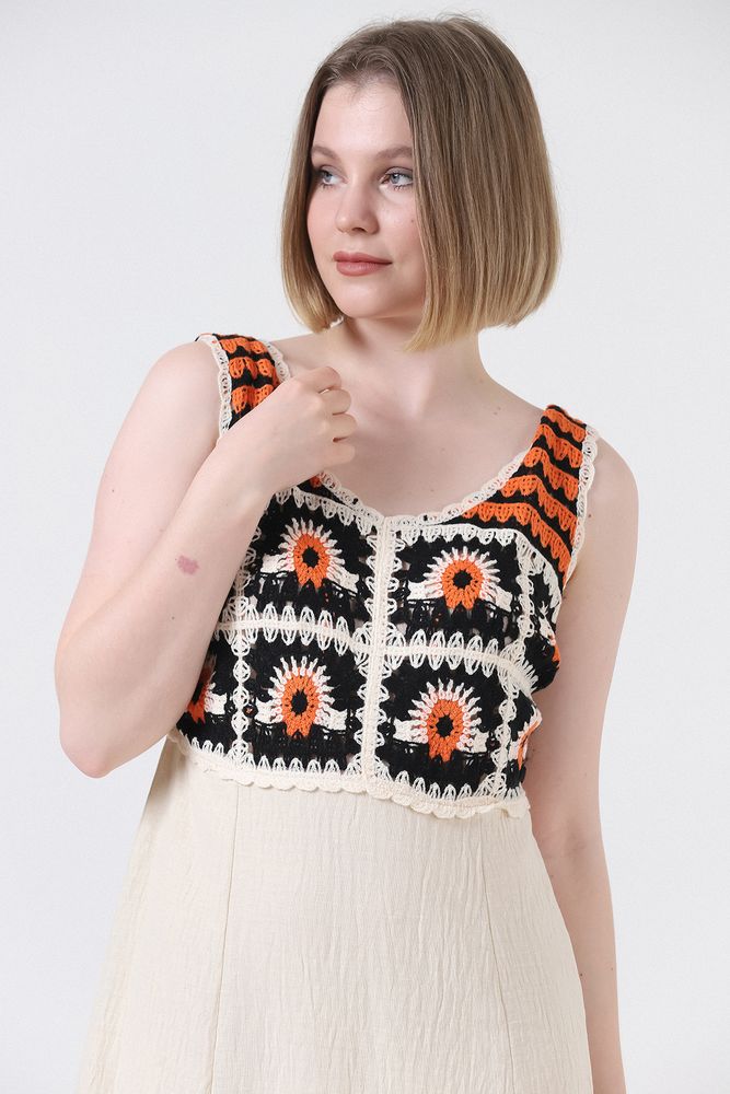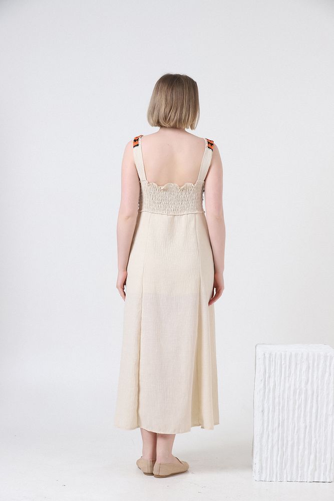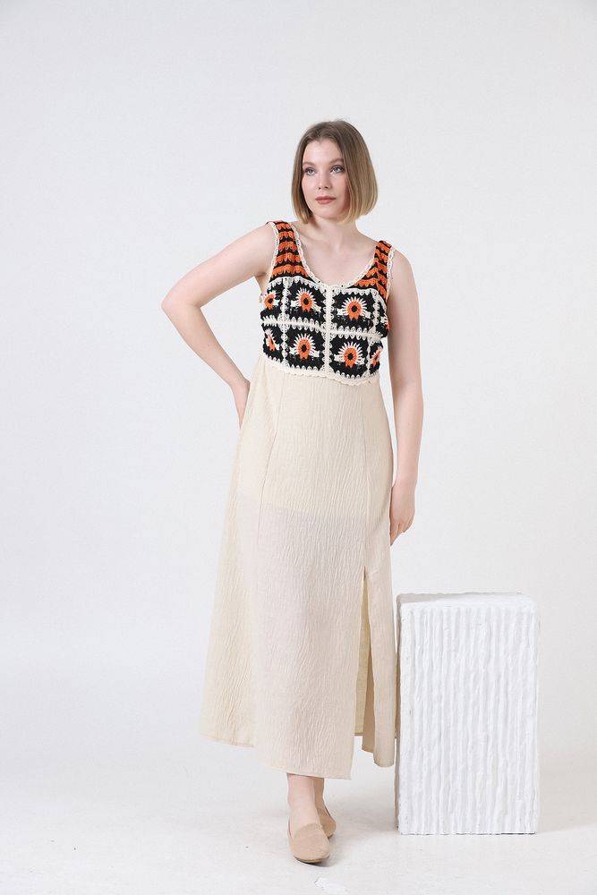 Topshow Taş Oranj Beden Aplik Askılı Keten Toptan Elbise