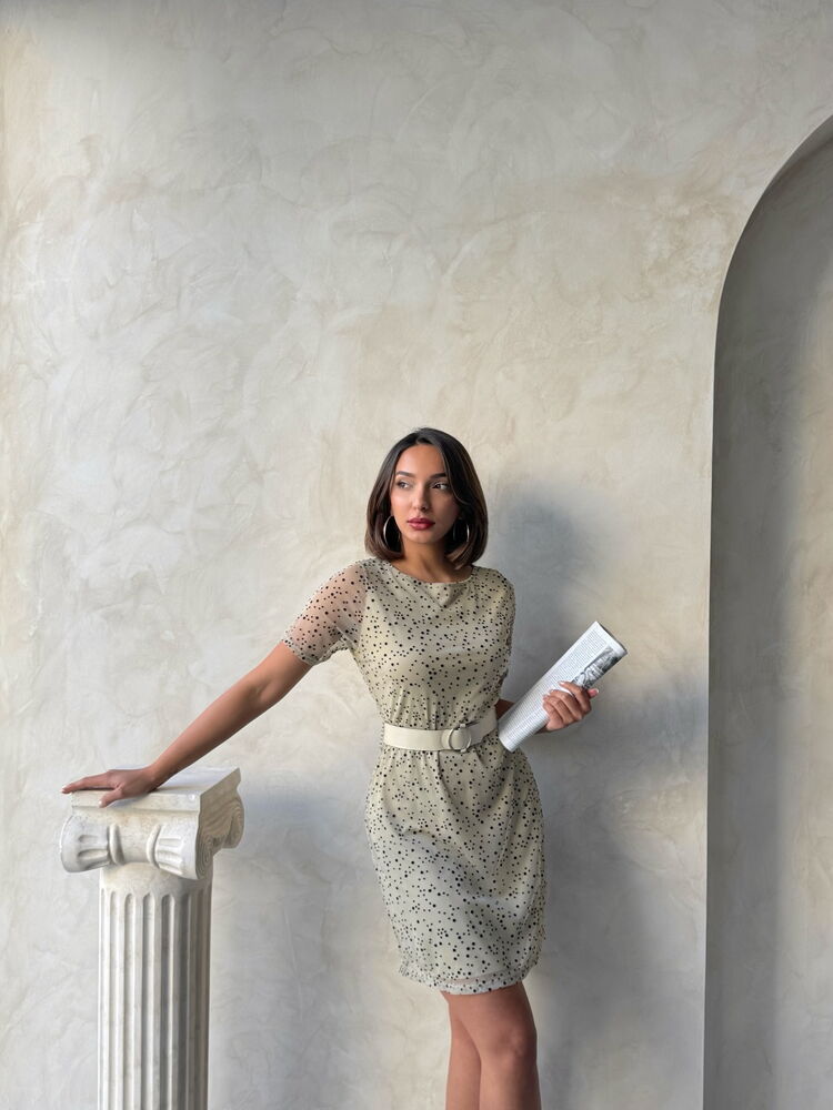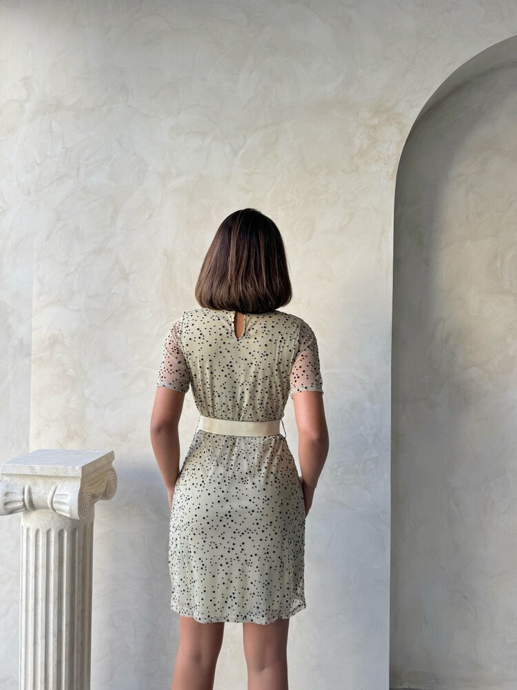 Topshow Taş Siyah Kemerli Kısa Kollu Toptan Elbise